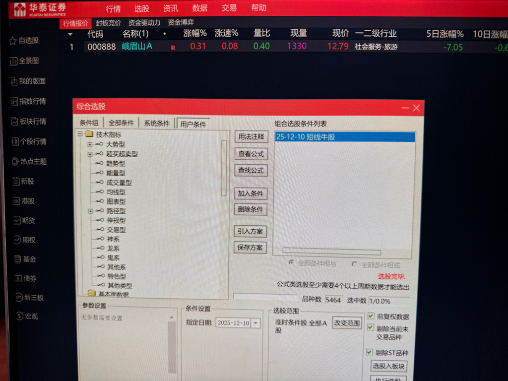 用我自己写的选股器,五千多只股票,只选出峨眉山一个票,咋回事?