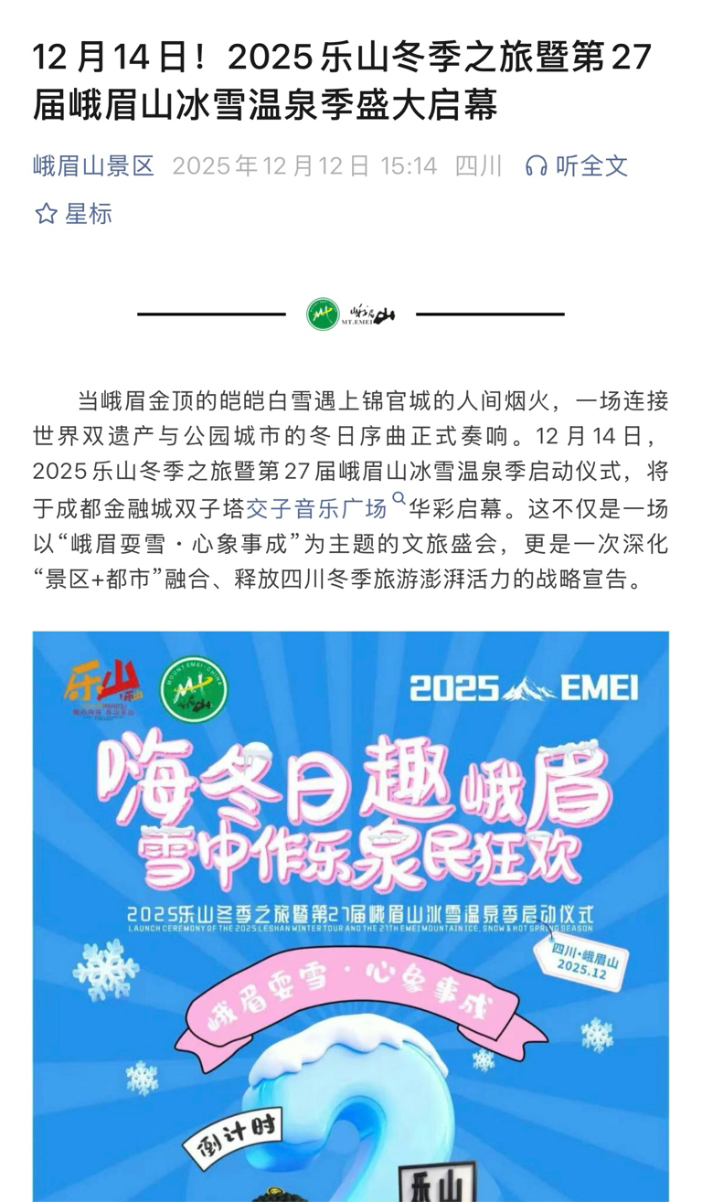 $峨眉山A(SZ000888)$ 下周主线,冰雪旅游!