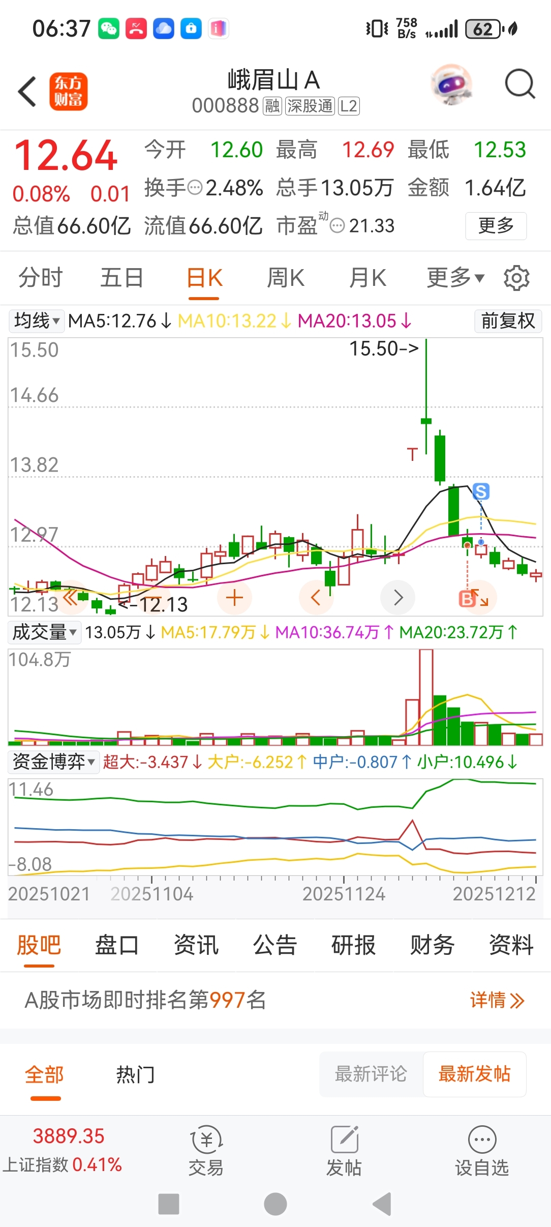 $峨眉山A(SZ000888)$ 上星期去了一趟峨眉。买的股票总共赚了16块钱。