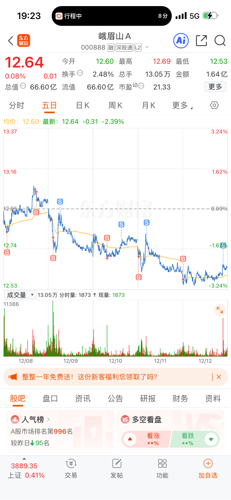 $峨眉山A(SZ000888)$ 每天t,不怕,这个位置不怕