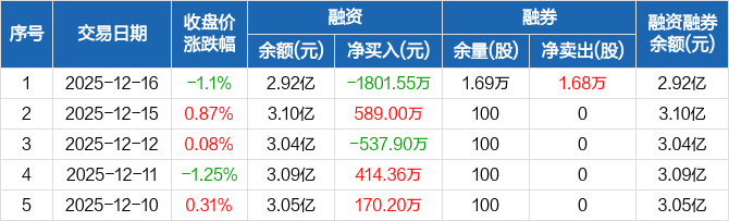峨眉山A:融资净偿还1801.55万元,融资余额2.92亿元(12-16)