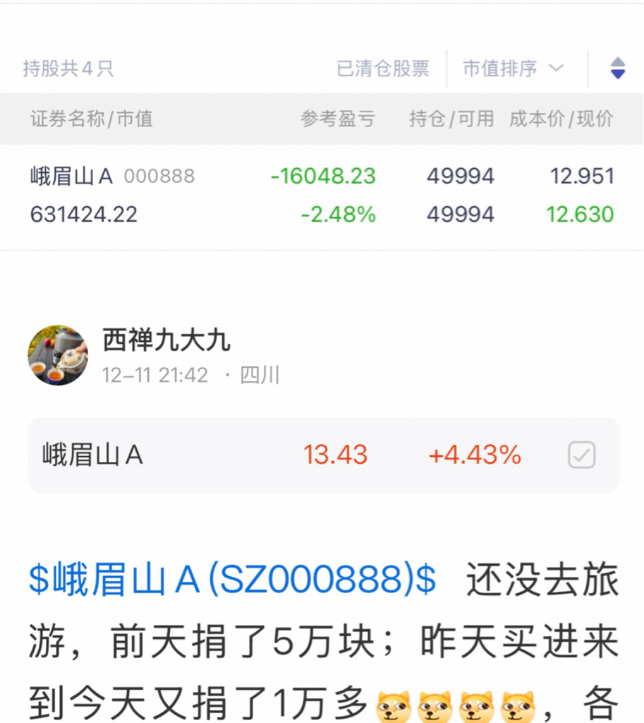 $峨眉山A(SZ000888)$ 可以安心去旅游了
