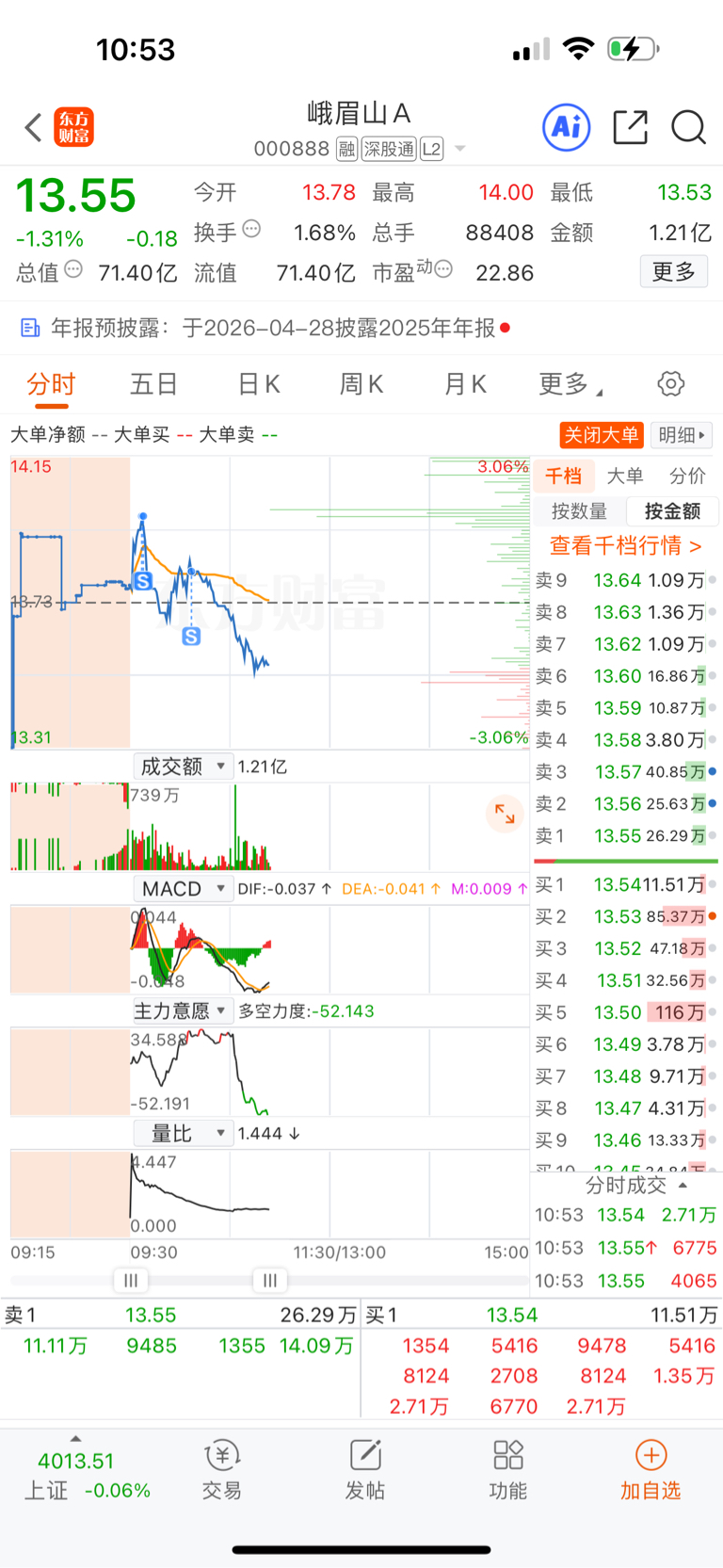 $峨眉山A(SZ000888)$ 这杂毛股,还好全仓买了神剑