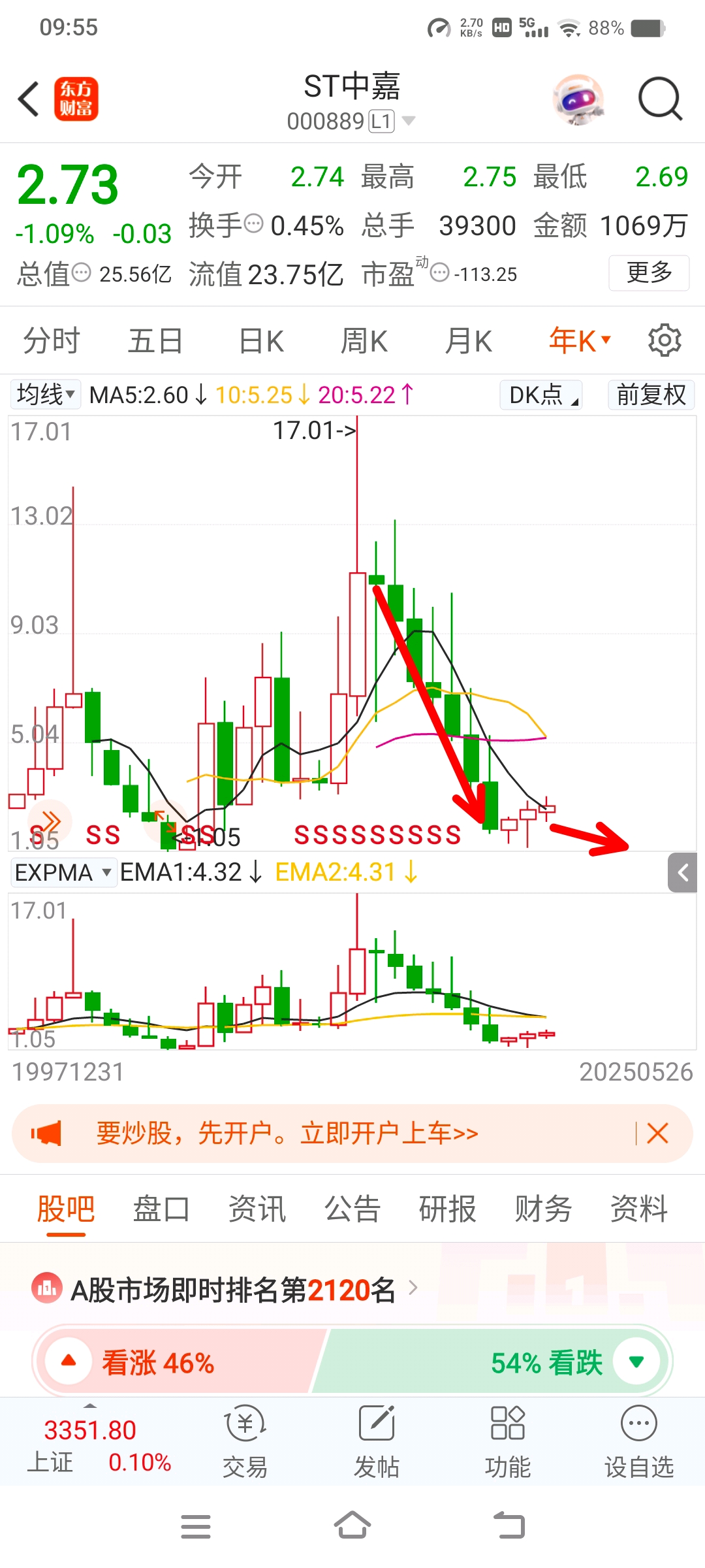 $ST中嘉(SZ000889)$ 连续七根大阴线,去年和前年收了二根小阳线,今年会下跌收成阴线,有人说看年线不靠谱,小半年都过去了,趋势摆这。