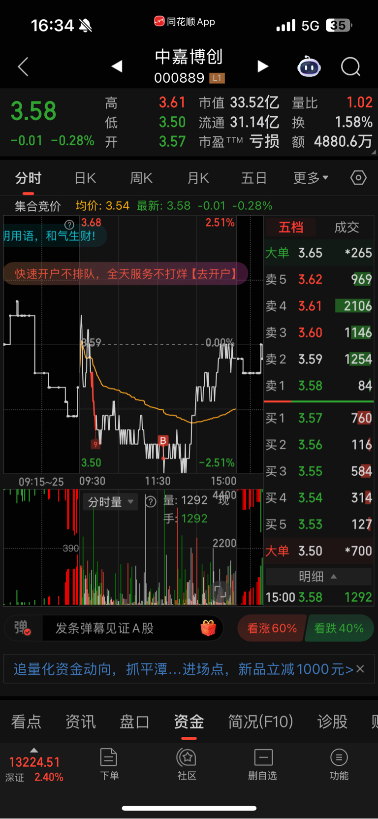 $中嘉博创(SZ000889)$ mmp,今天加仓了,明天高开,就t