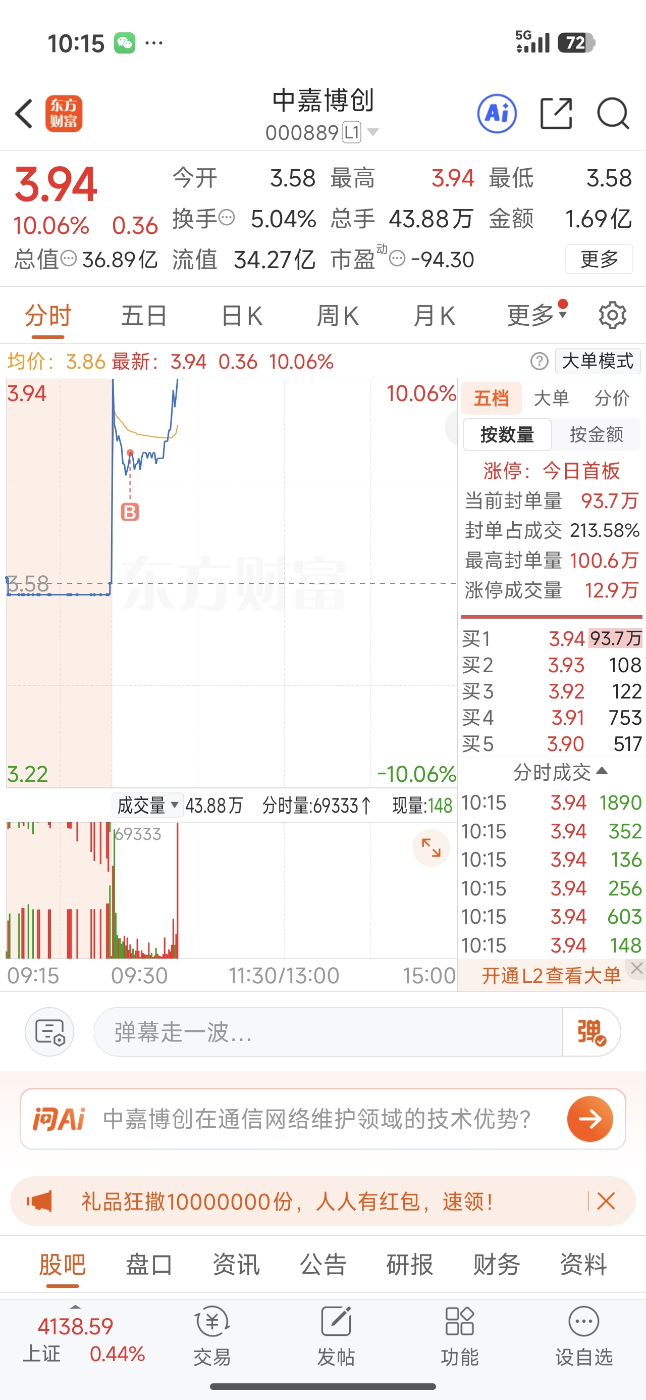 $中嘉博创(SZ000889)$ 今天可以加鸡腿了兄弟们