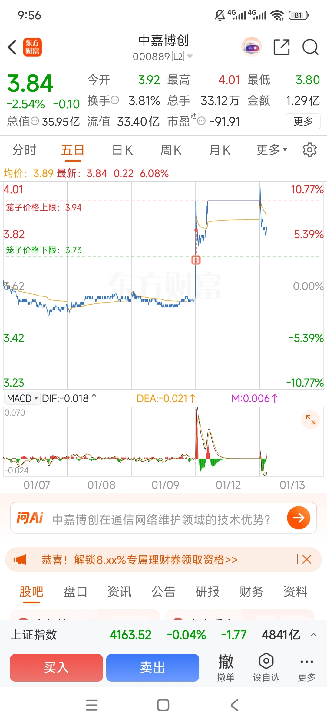 $中嘉博创(SZ000889)$ 我踏马进去就跌