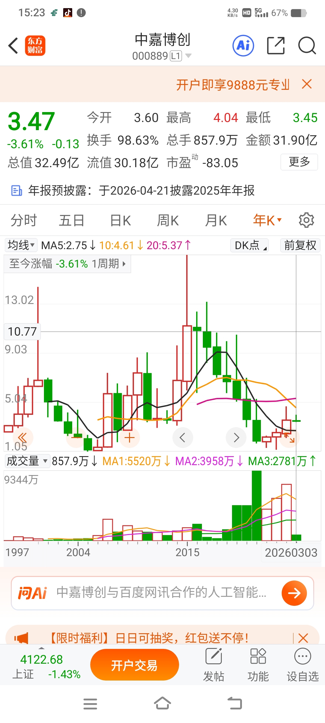 $中嘉博创(SZ000889)$ 连续涨三年了,今年上半年看看得了。小玩玩,无伤大雅。