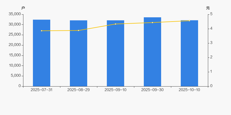 截至2025年10月10日,公司最新总股本为4.2亿股,其中流通股本为4.19亿股。户均持有流通股数量由上期的1.25万股上升至1.31万股,户均流通市值5.95万元。