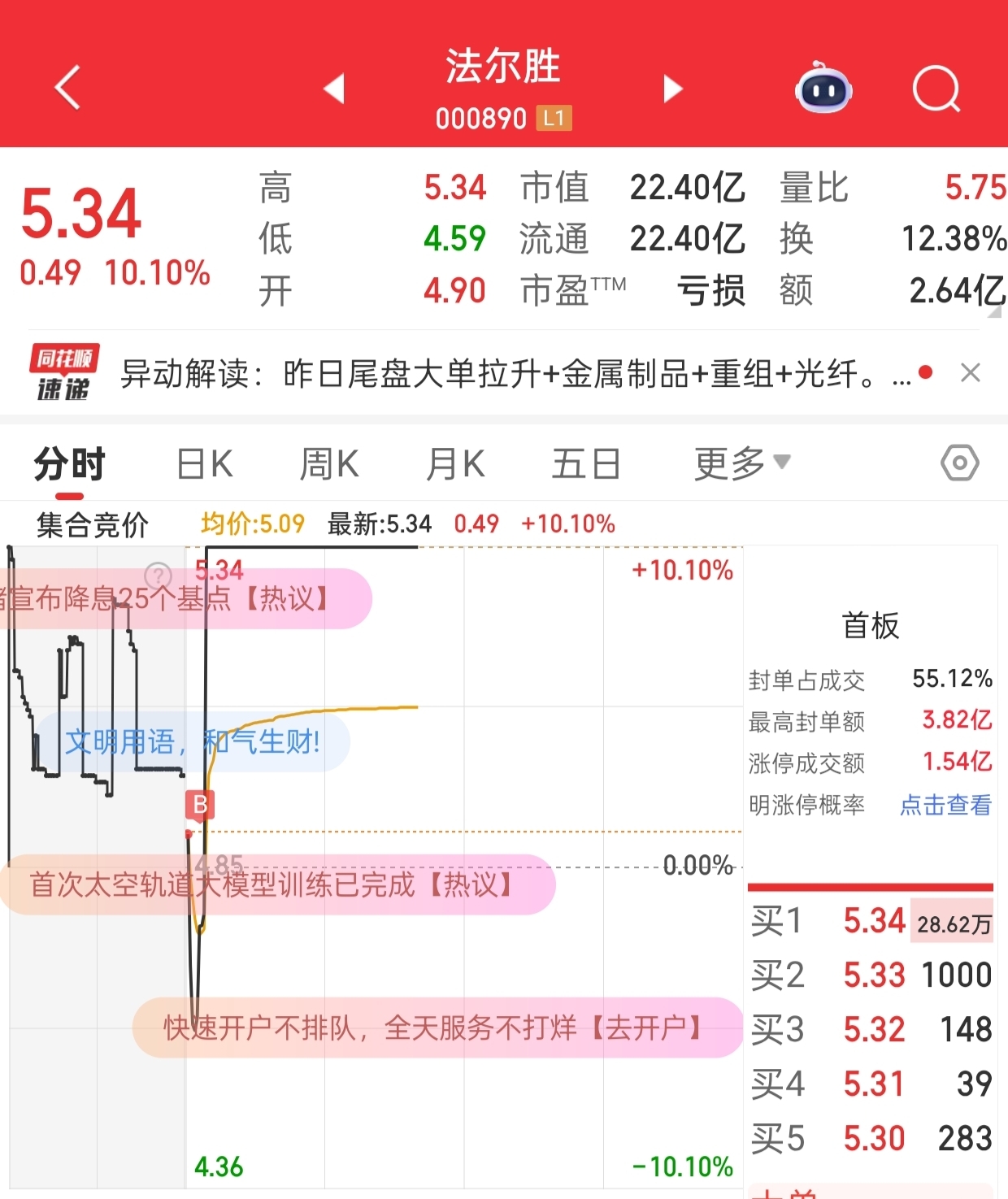 $法尔胜(SZ000890)$ 又抓住一条龙,有异动就不要犹豫,短线抓的就是机会!