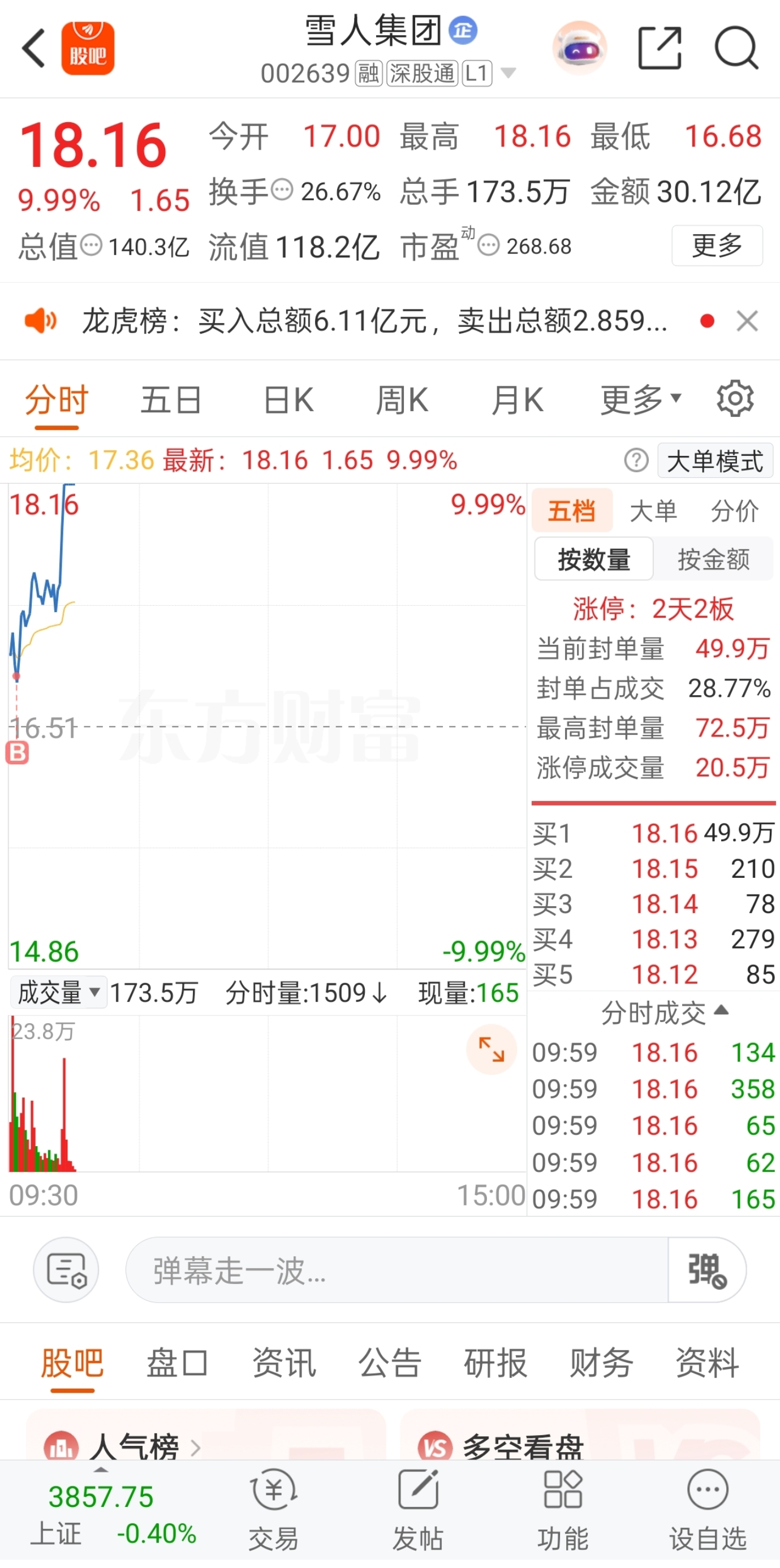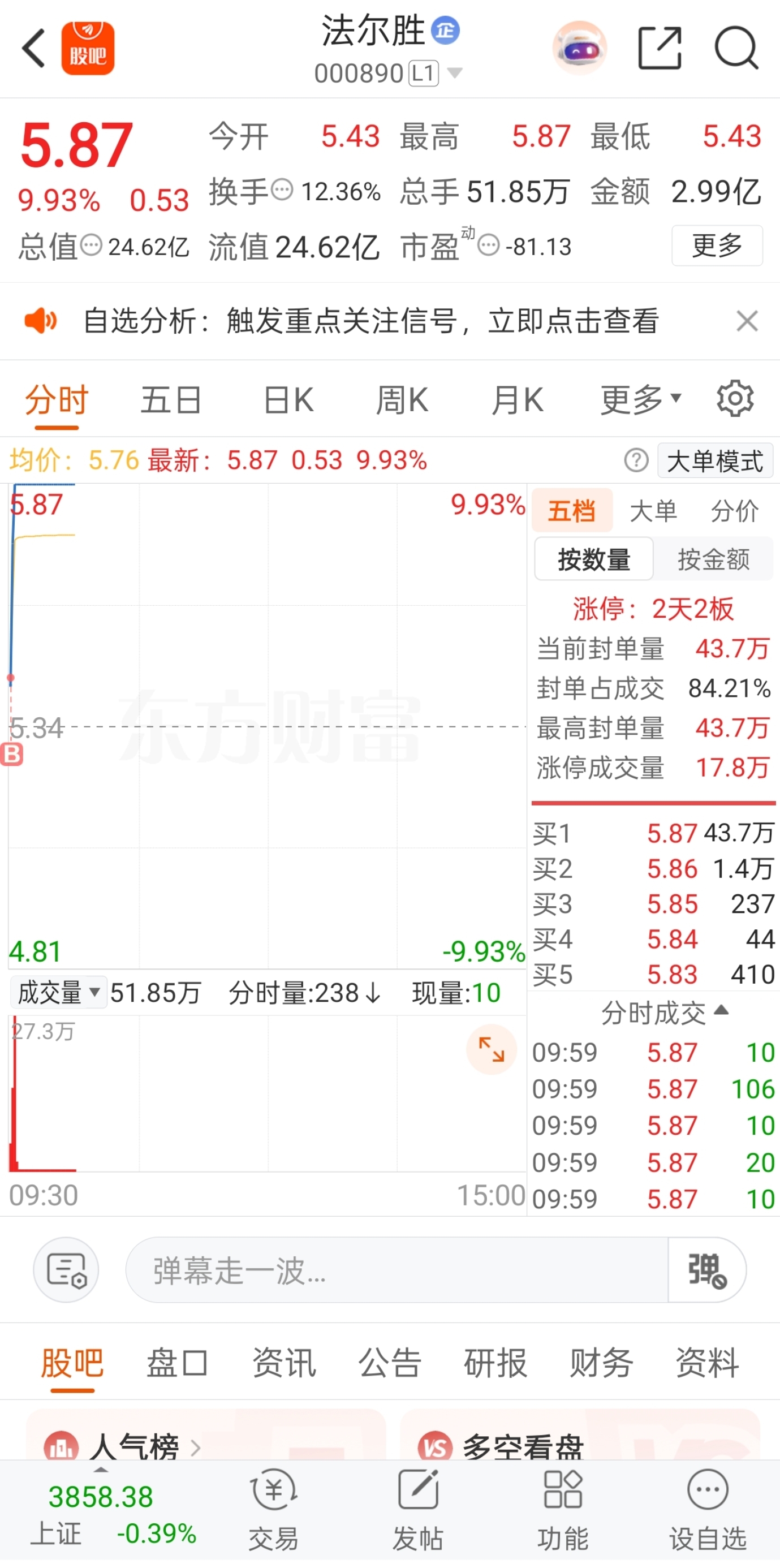 永远欢呼,永远热泪盈眶!所以说机会是留给有准备的人,早盘介入的两只个股$法尔胜(SZ000890)$ $雪人集团(SZ002639)$