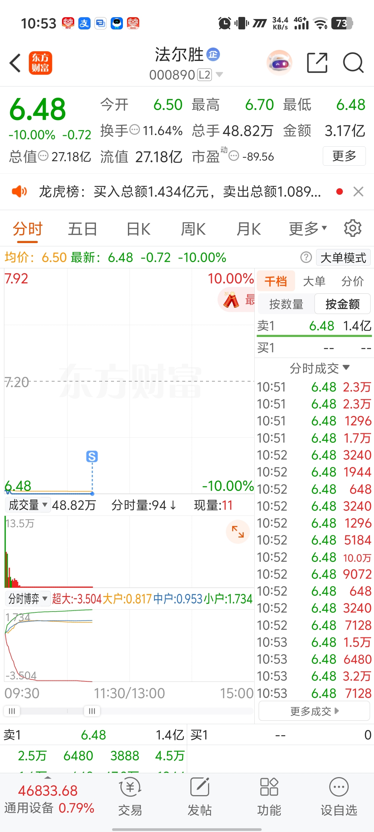 $法尔胜(SZ000890)$ 对不住各位,挣一个点先走了
