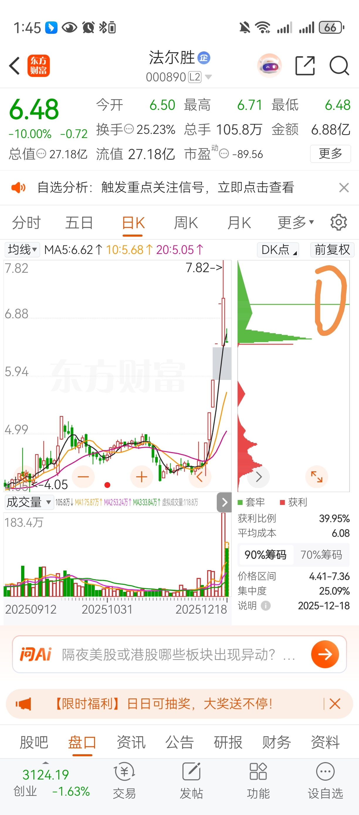 $法尔胜(SZ000890)$ 主力套牢这么多,27个点!!!无动于衷?