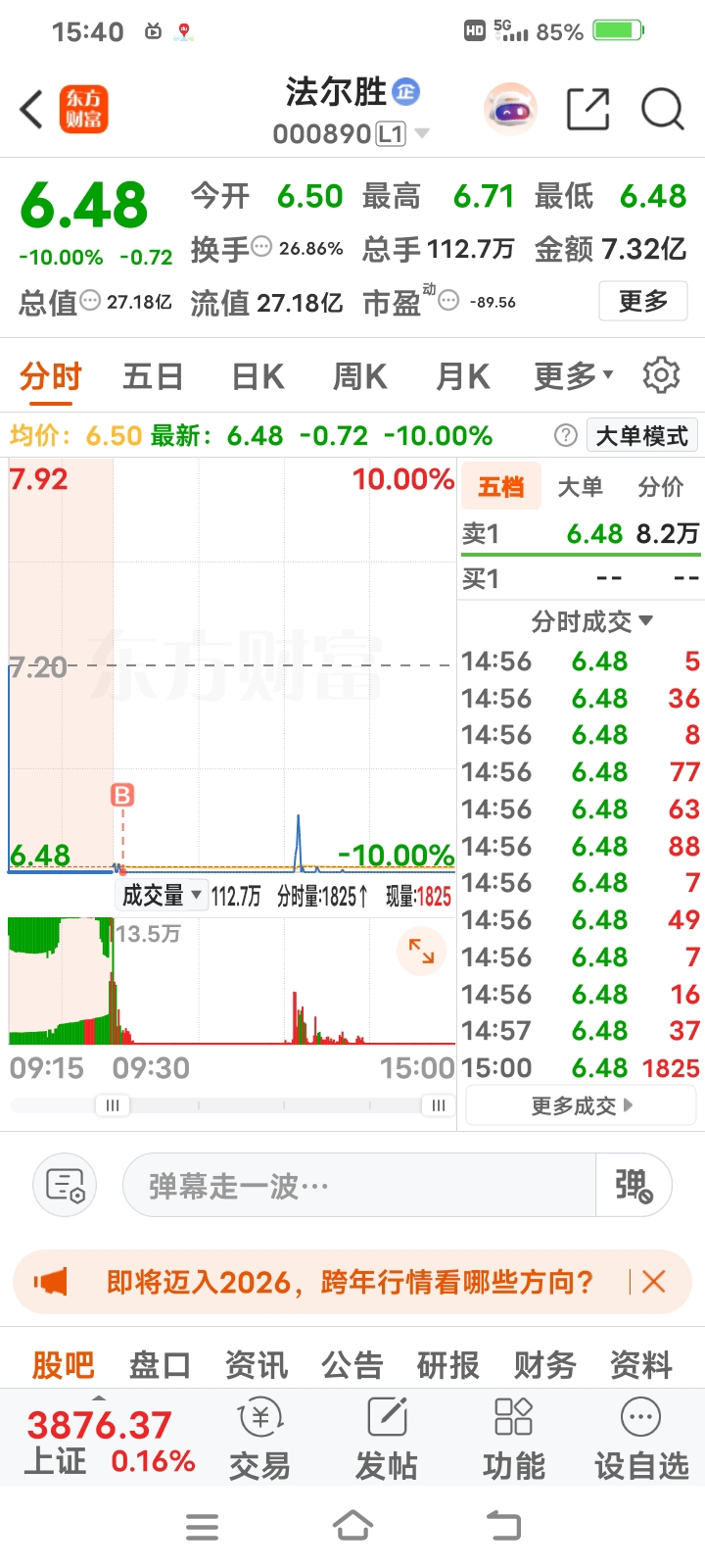 $法尔胜(SZ000890)$ 果断打满仓位,明天直接涨停,明天肯定不会封死跌停的,今天封单明显不足,换手接力了。