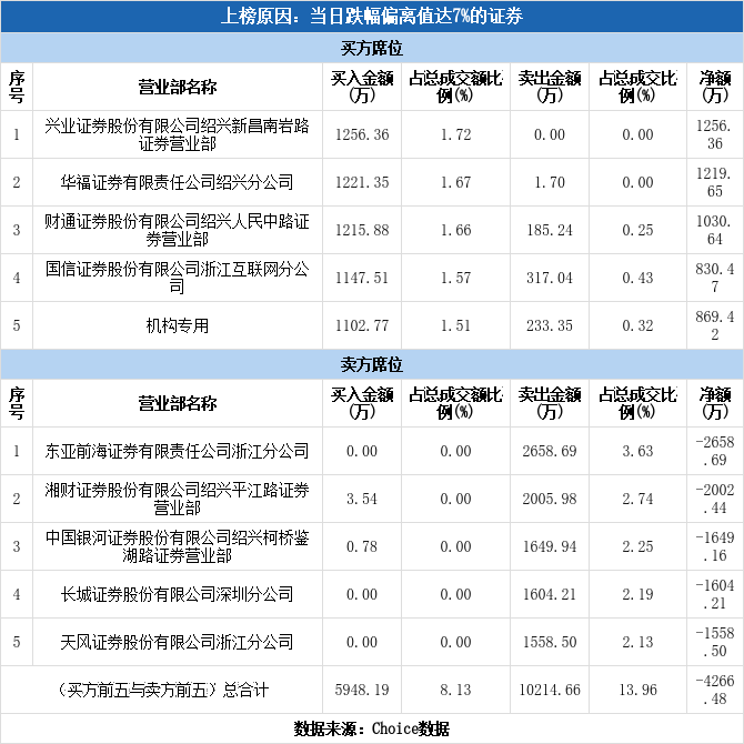 深交所2025年12月18日交易公开信息显示,法尔胜因属于当日跌幅偏离值达7%的证券而登上龙虎榜。法尔胜当日报收6.48元,涨跌幅为-10.00%,偏离值达-9.30%,换手率26.86%,振幅3.19%,成交额7.32亿元。
