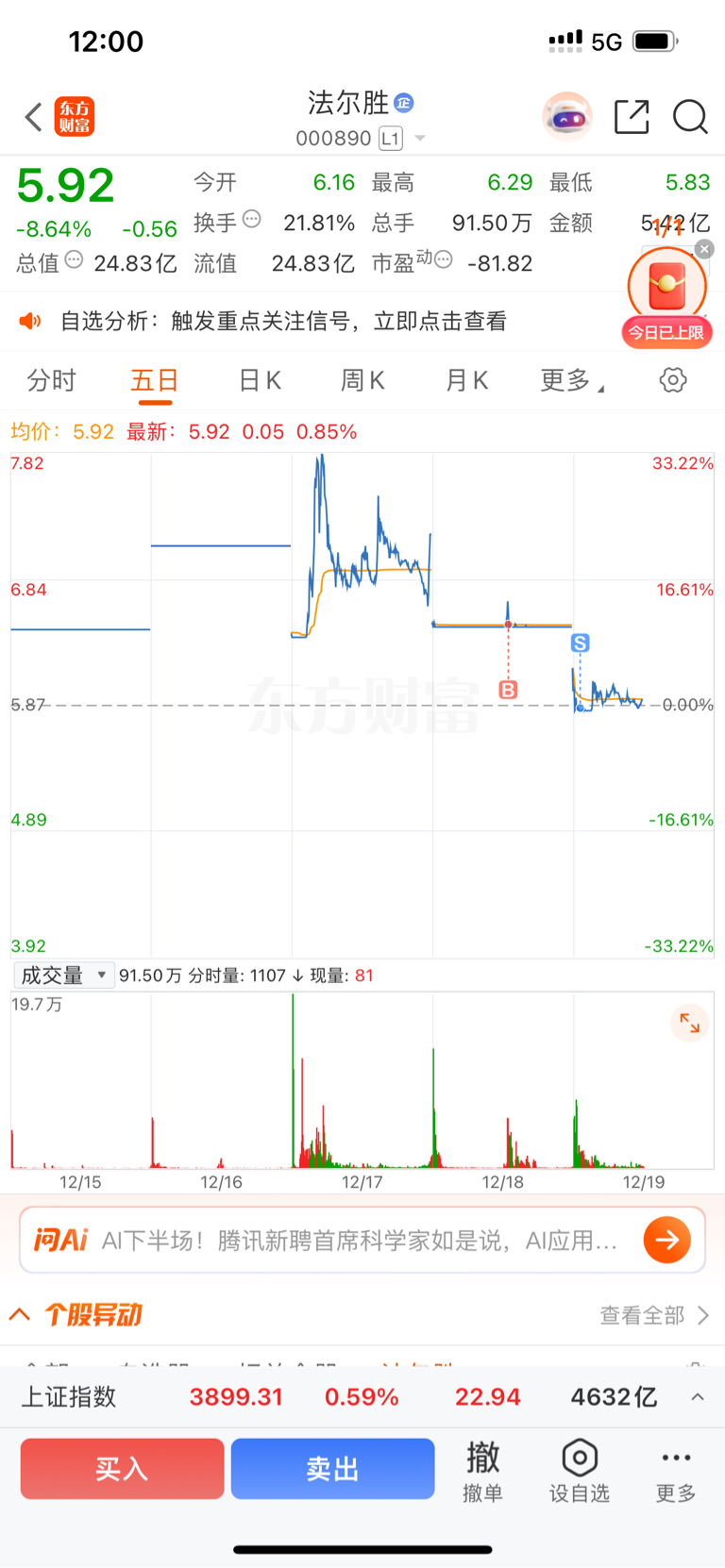 $法尔胜(SZ000890)$ 亏我两百大洋,我认,纯纯的记吃不记打,