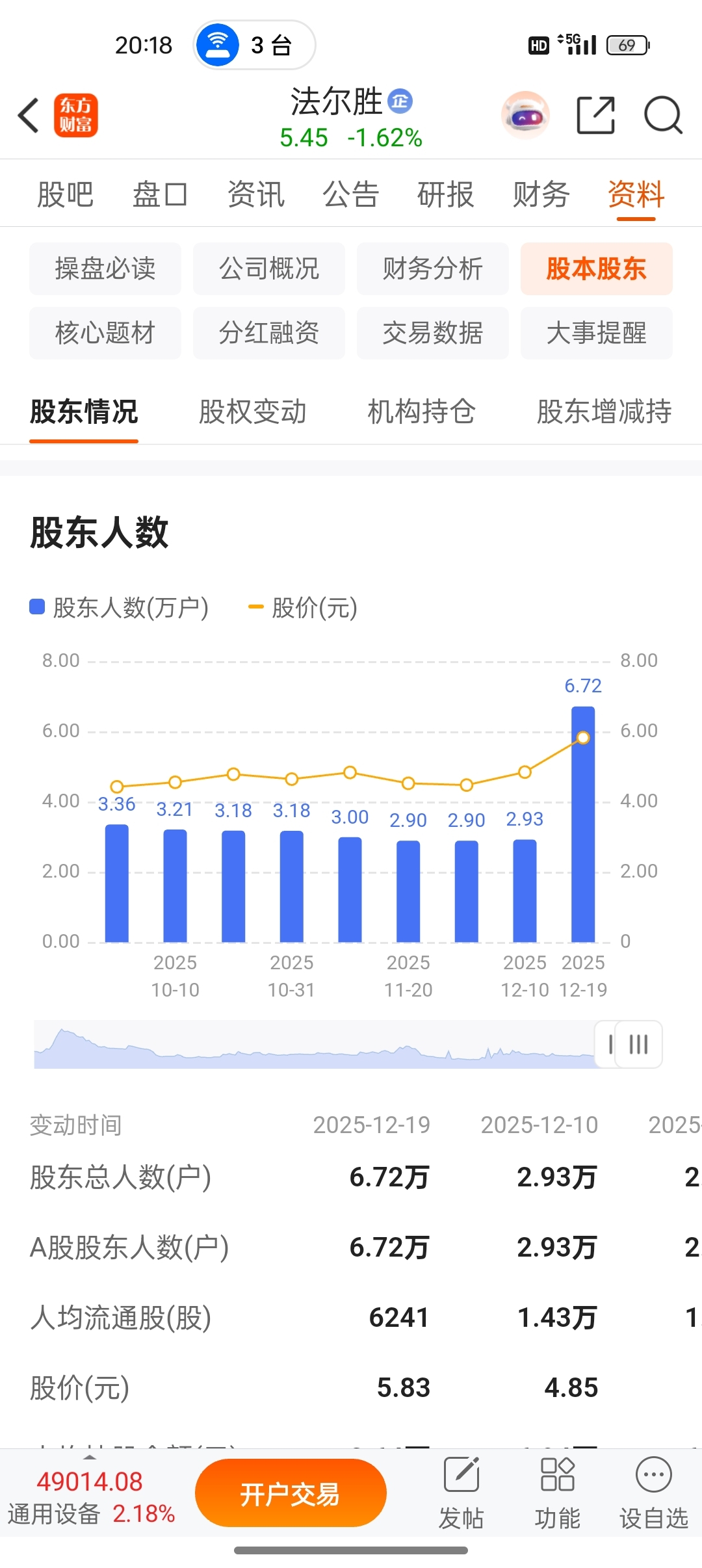 $法尔胜(SZ000890)$ 最新股东人数翻倍,筹码派发到广大散户手里