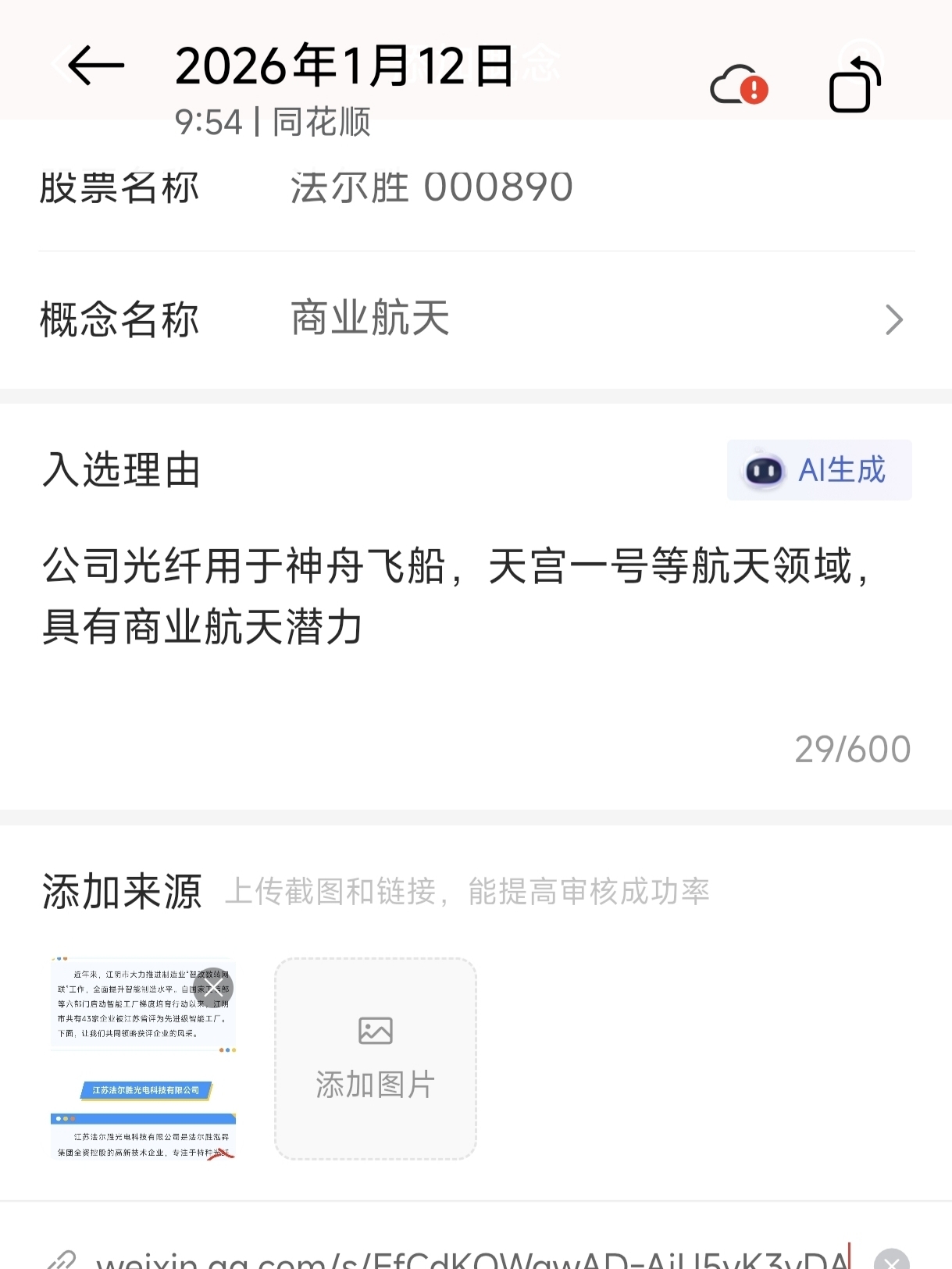 同花顺上已新增商业航天概念!我参与维护的,法尔胜是正宗商业航天概念龙头。