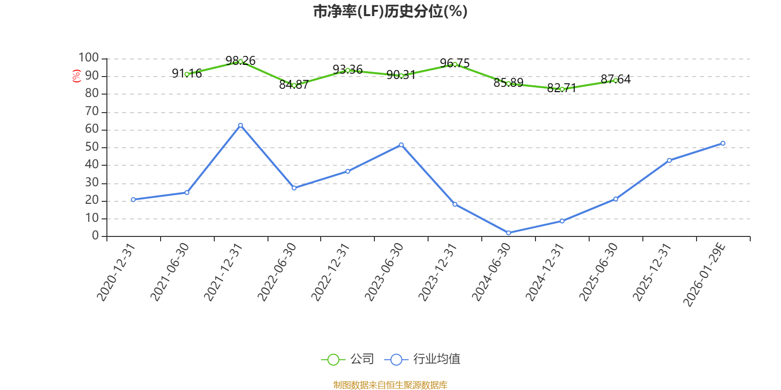 市盈率、市净率为负时,不显示当期分位数,会导致折线图中断。