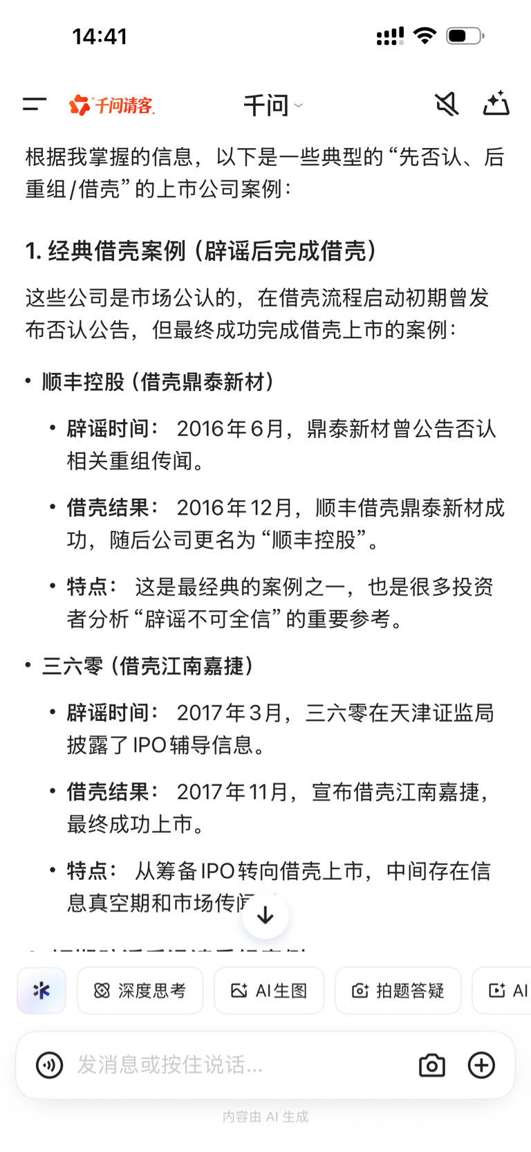 千问上又找了几家先公告不重组借壳,后又重组借壳的。法尔胜会来这一手吗?