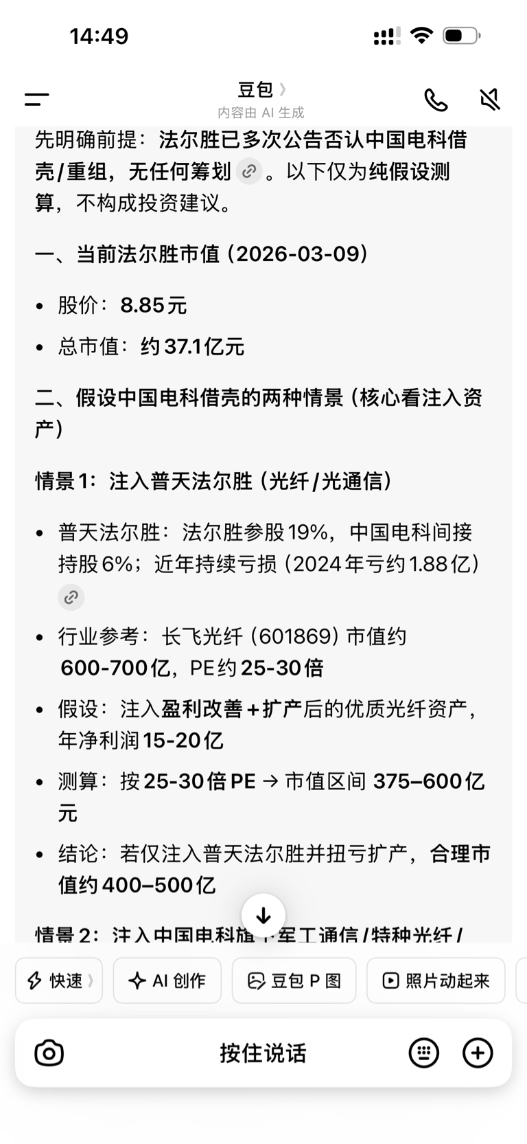 $法尔胜(SZ000890)$ 如果真的中国电科借壳法尔胜那市值要涨10倍了。第二个上纬新材?$天普股份(SH605255)$