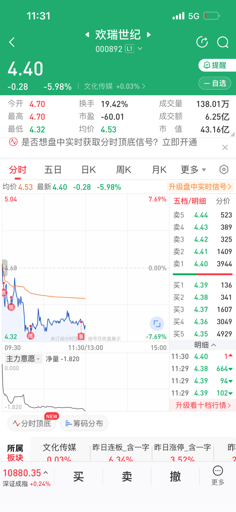 $欢瑞世纪(SZ000892)$ 风浪越大鱼越贵,牛市不要怕