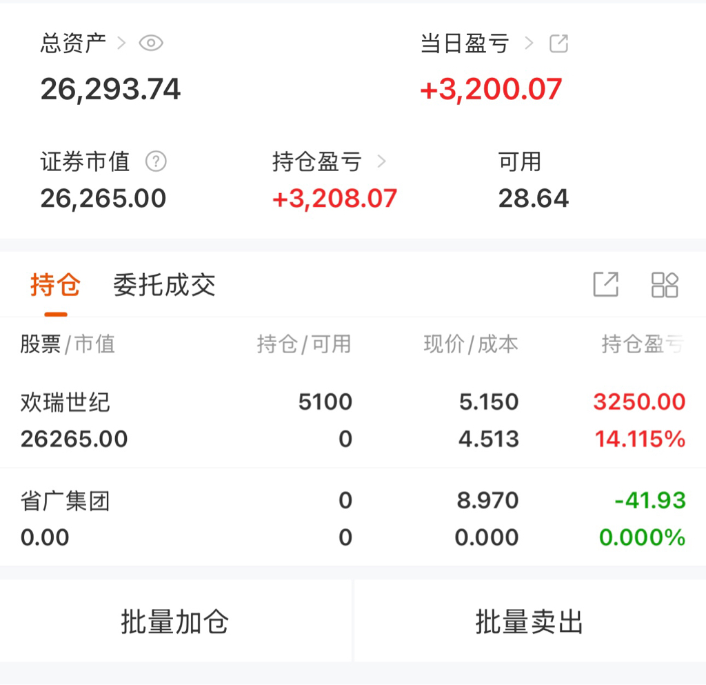 $欢瑞世纪(SZ000892)$ 吃的饱饱的今天,感谢主力嘿嘿嘿