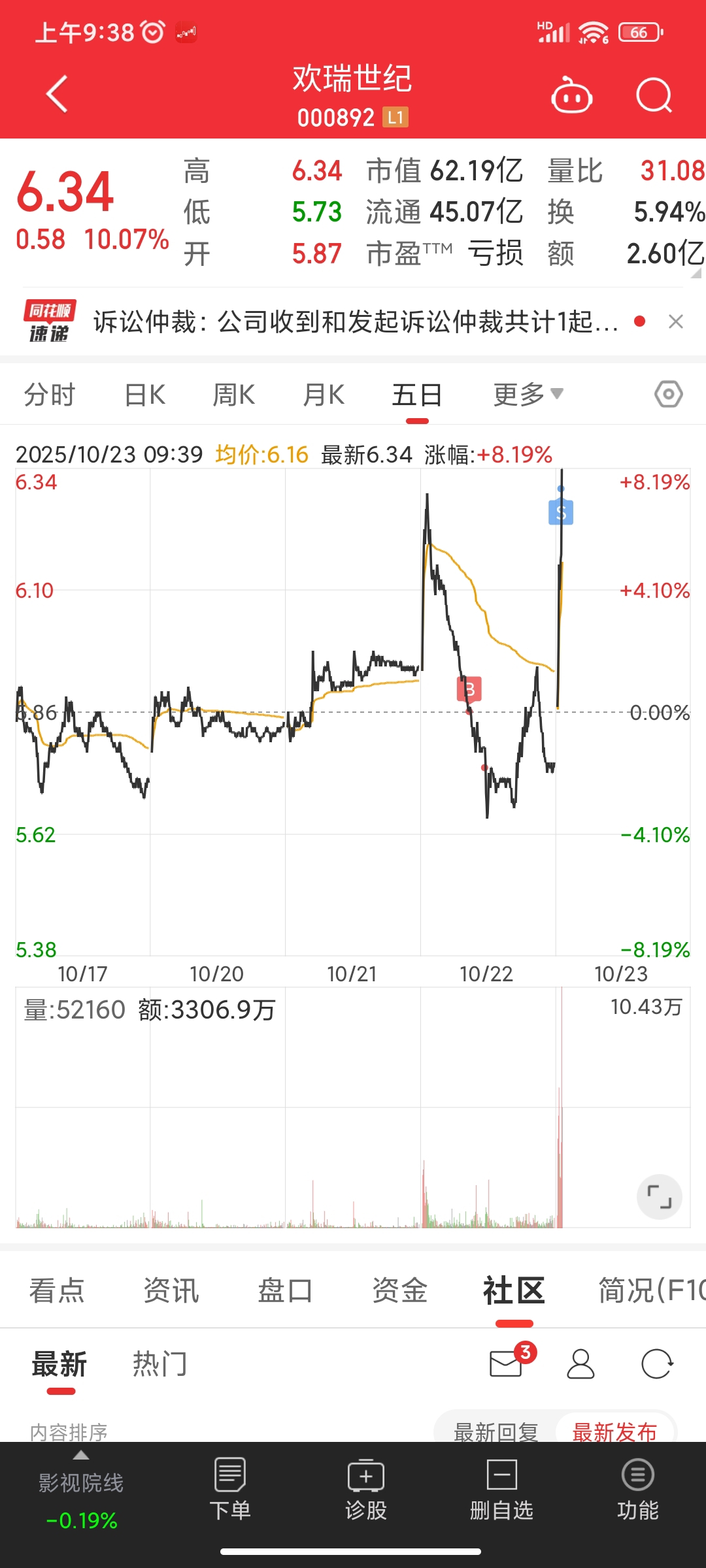 $欢瑞世纪(SZ000892)$ 涨停就卖,不要留念