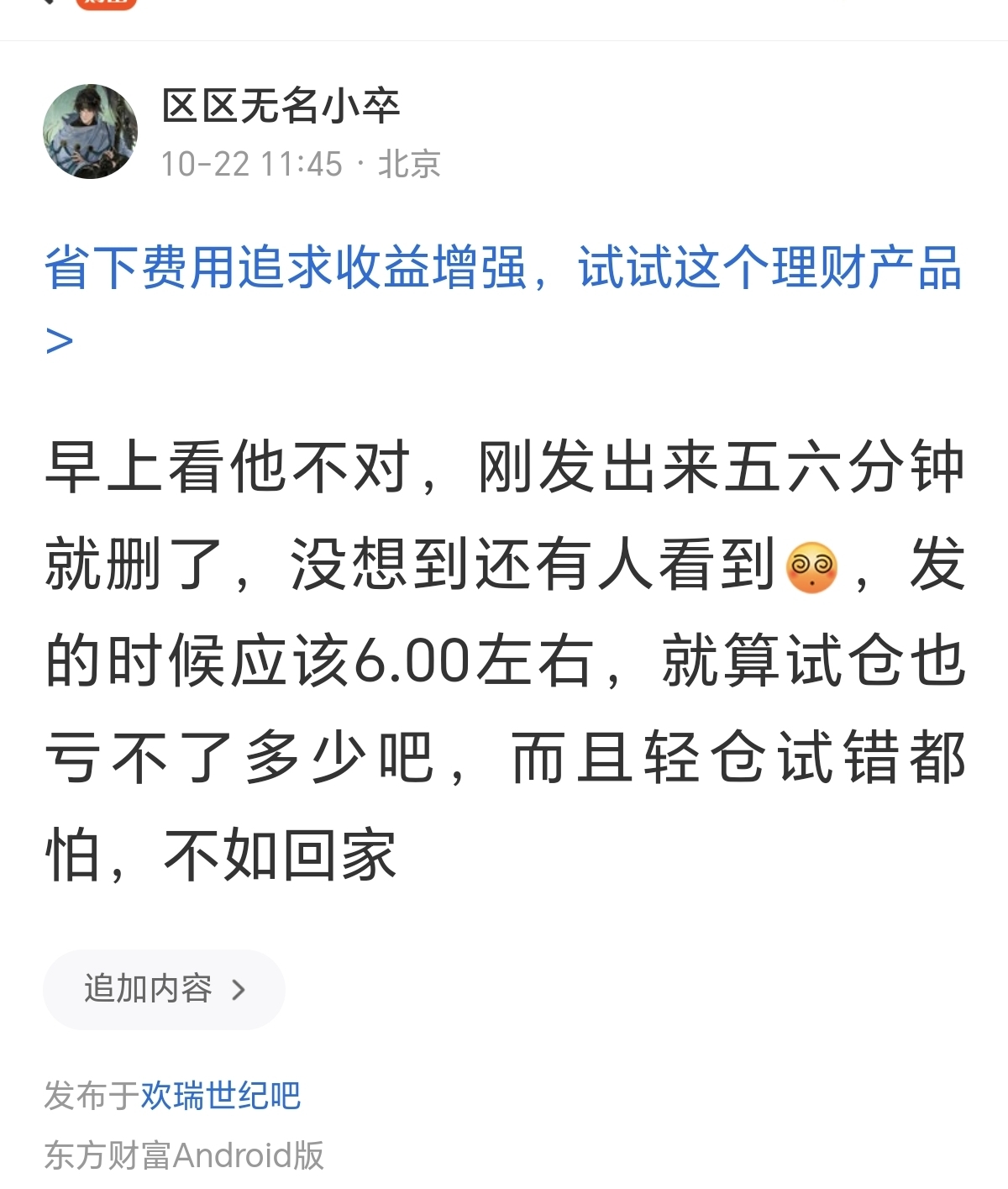 温馨提示: 1.根据《证券法》规定,禁止编造、传播虚假信息或者误导性信息,扰乱证券市场;2.用户在本社区发表的所有资料、言论等仅代表个人观点,与本网站立场无关,不对您构成任何投资建议。用户应基于自己的独立判断,自行决定证券投资并承担相应风险。《东方财富社区管理规定》