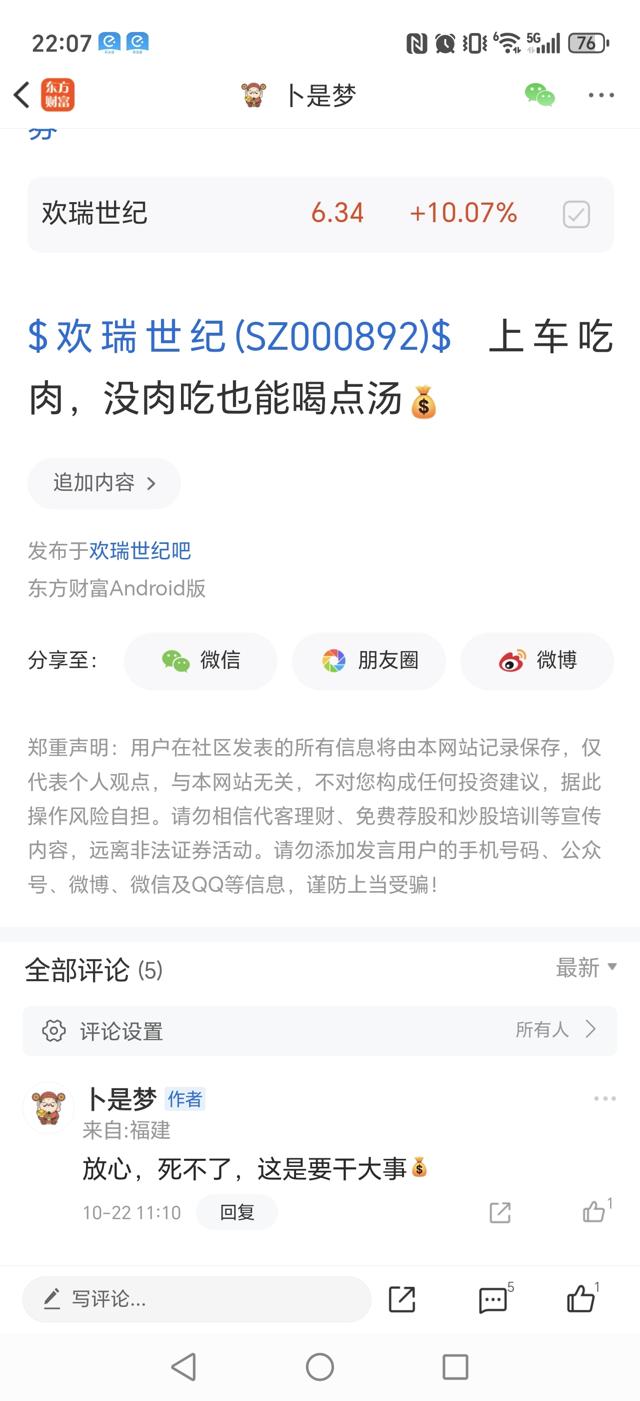 $欢瑞世纪(SZ000892)$ 昨日提示,亏我还给你们吃了定心丸,竟然没人点赞。