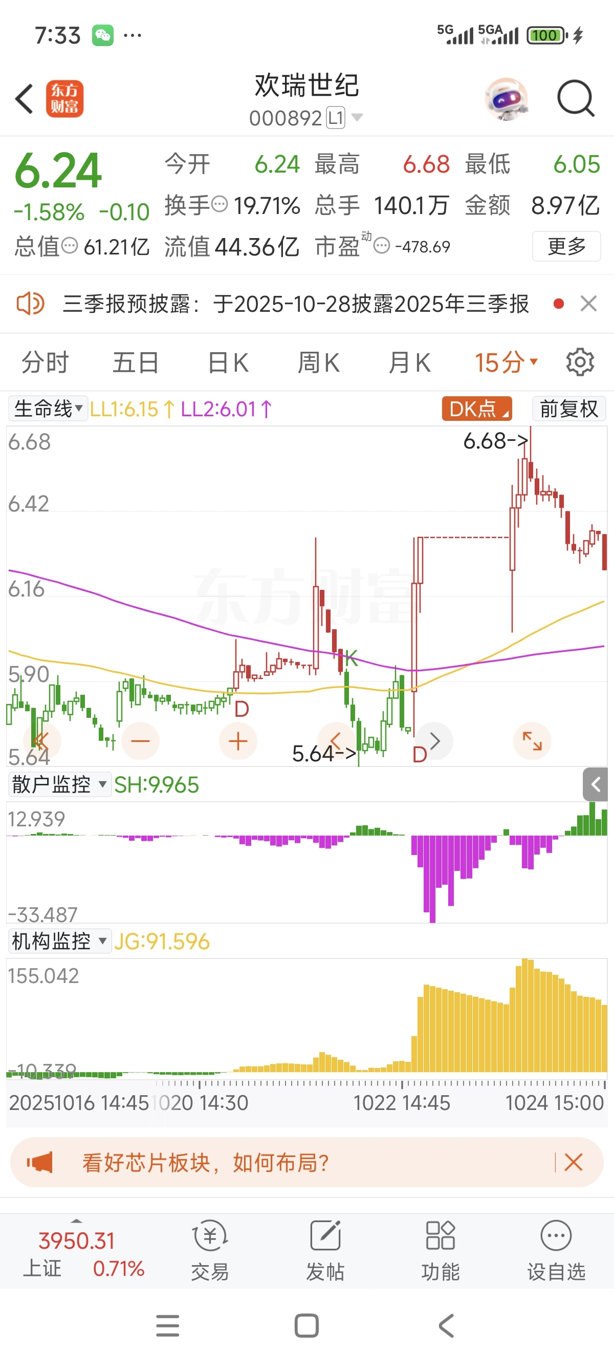 $欢瑞世纪(SZ000892)$ 大胆买入
