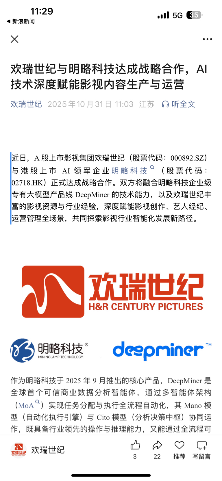 $欢瑞世纪(SZ000892)$ 利好来了,可惜我卖了