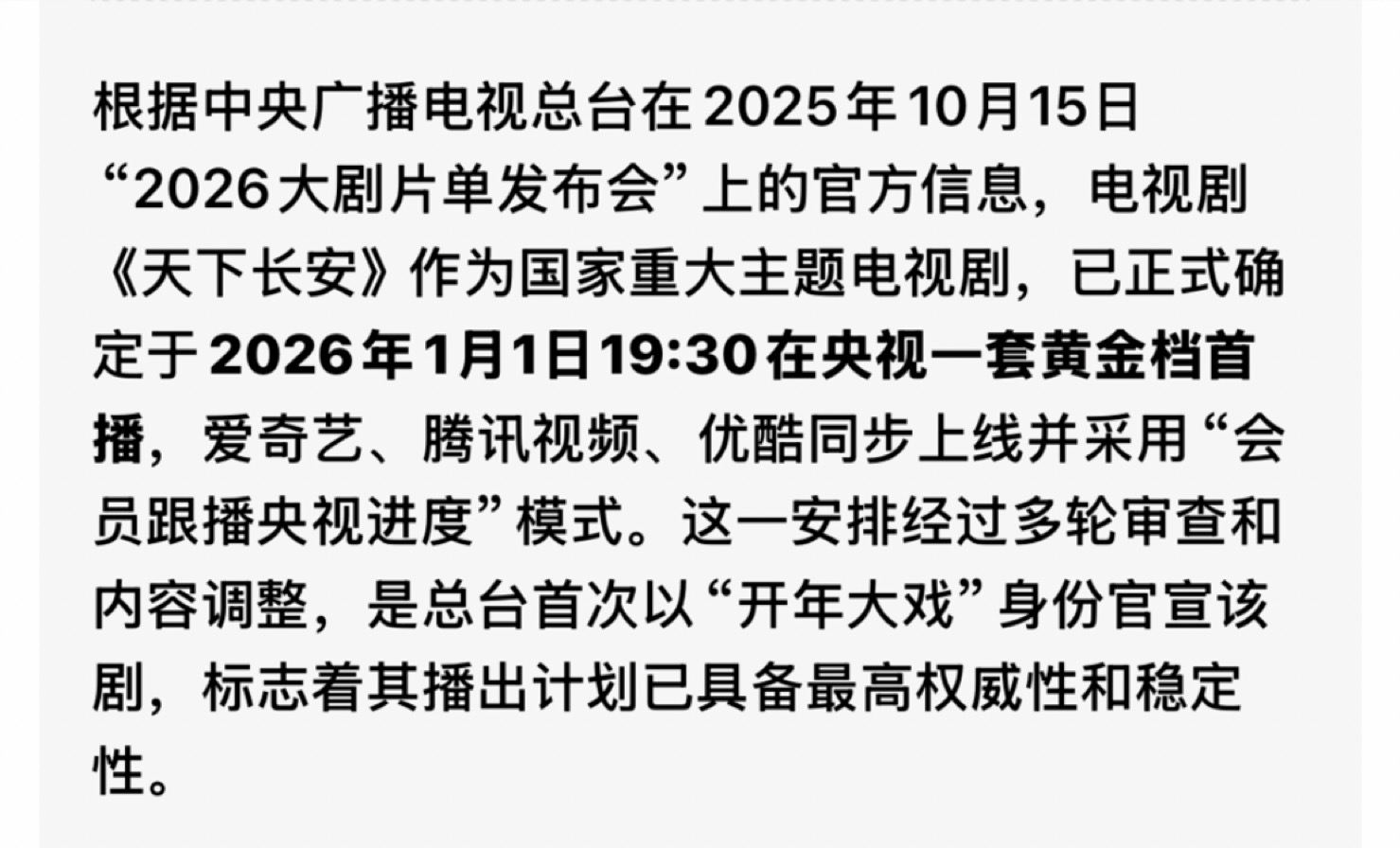天下长安定档2026年1月1号黄金档,感觉比较靠谱。
