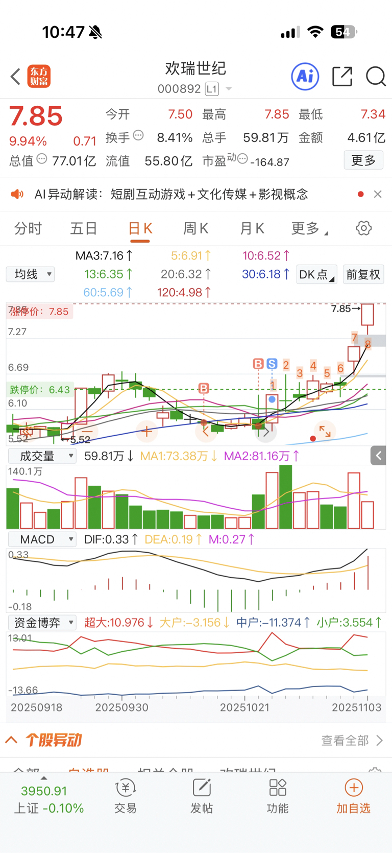$欢瑞世纪(SZ000892)$ 最近卖飞的太多了