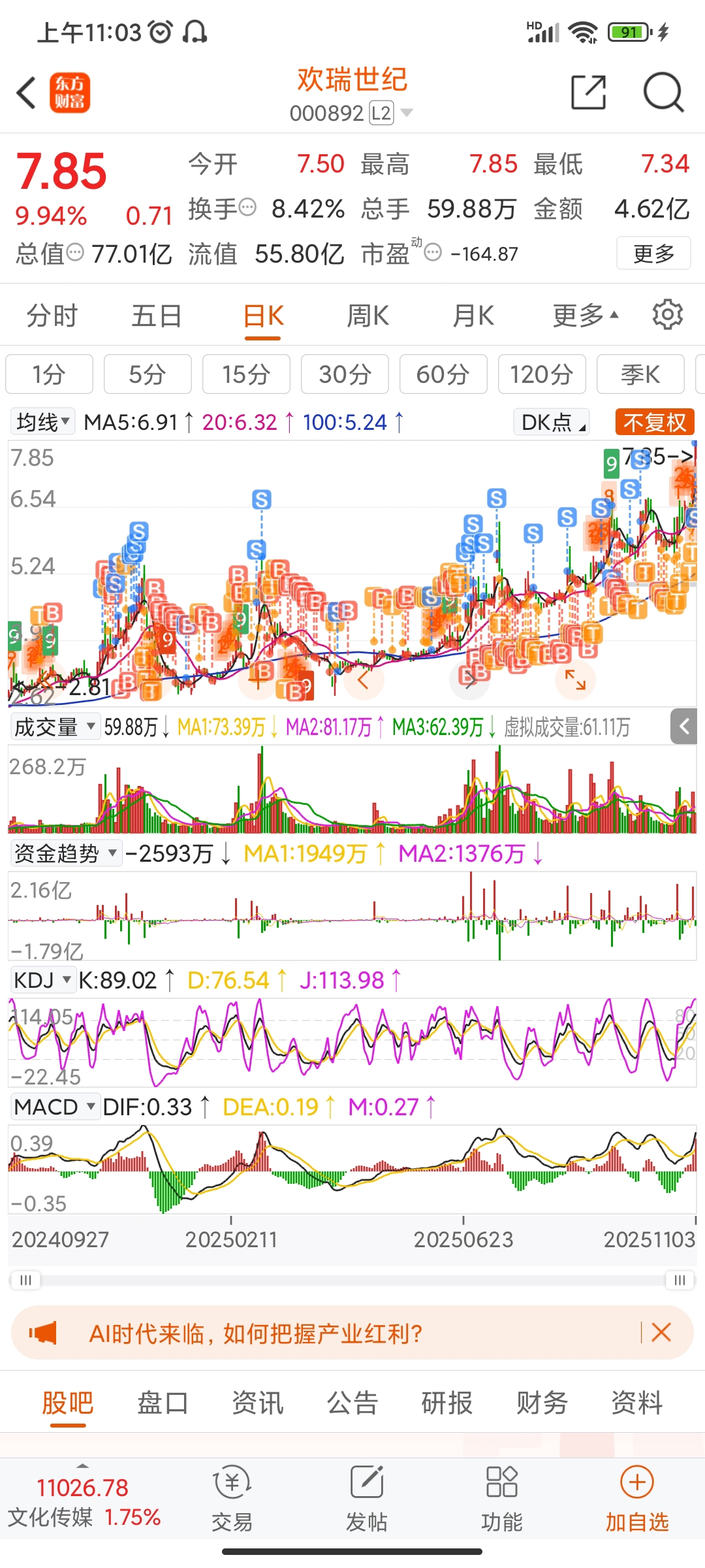 $欢瑞世纪(SZ000892)$  欢瑞世纪,老玩家k线买卖,跟着欢瑞老庄起舞啊,这次行情不言顶部,没有人能预测,坐稳轿子就好,底仓继续持有