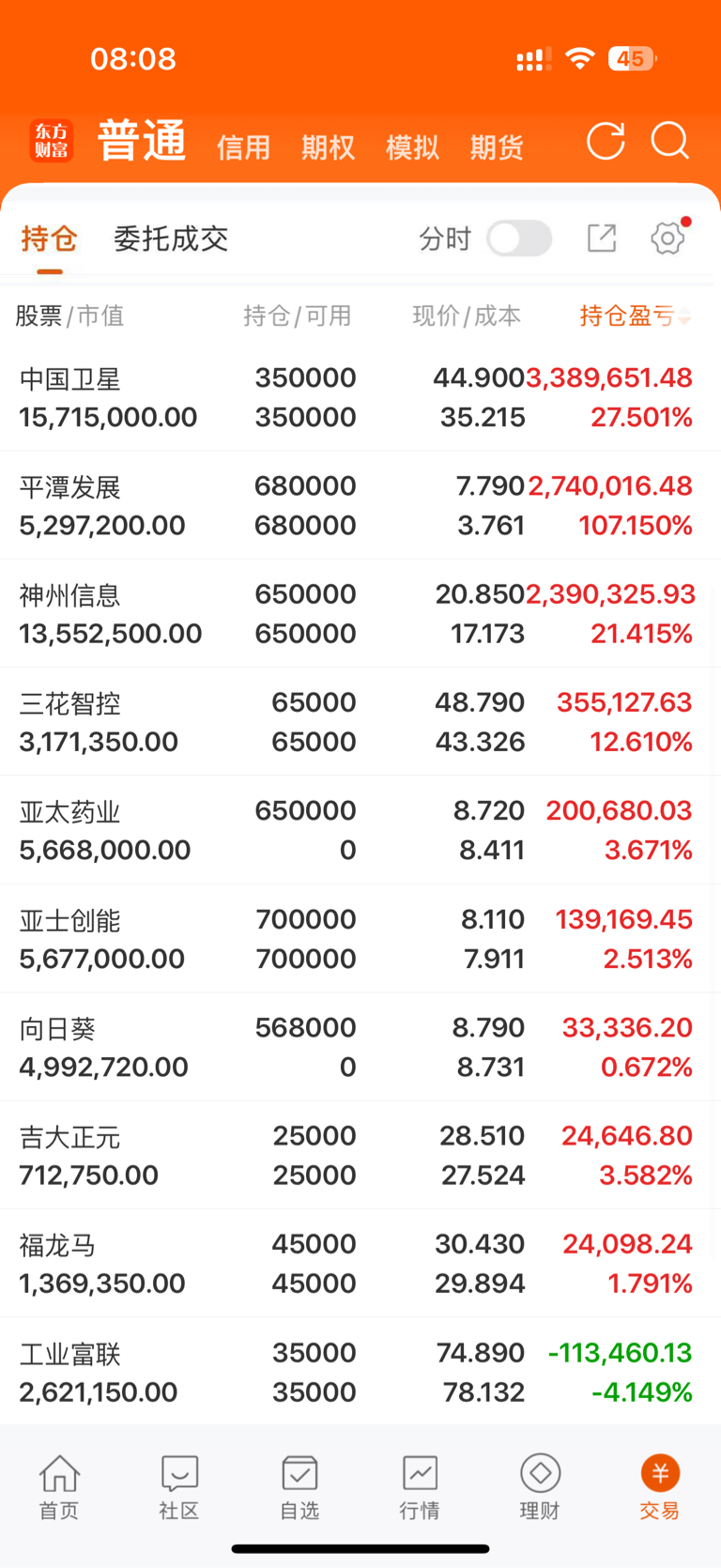 目前持仓:中国卫星继续铆钉五日线高抛低吸就好