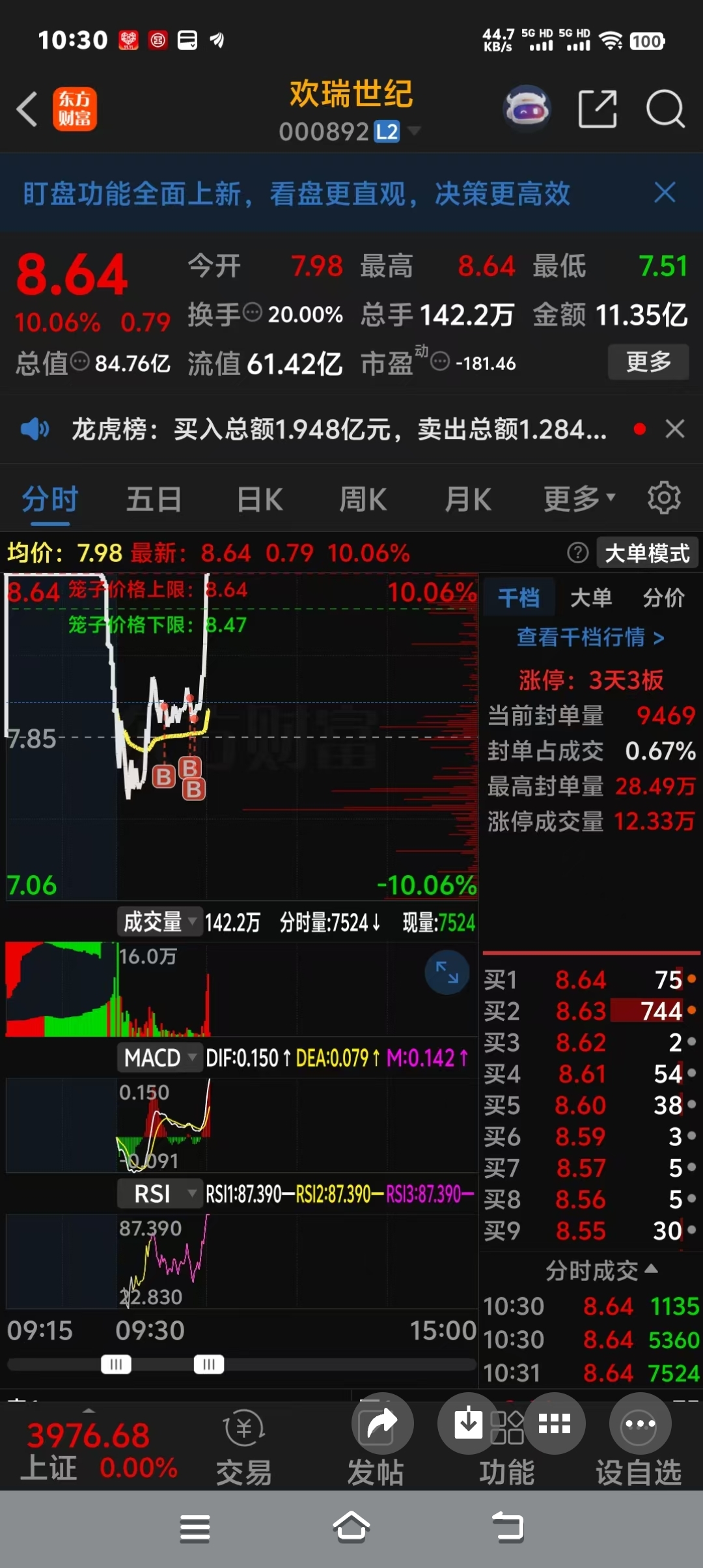 $欢瑞世纪(SZ000892)$ 买在这个位置还有点担心呢