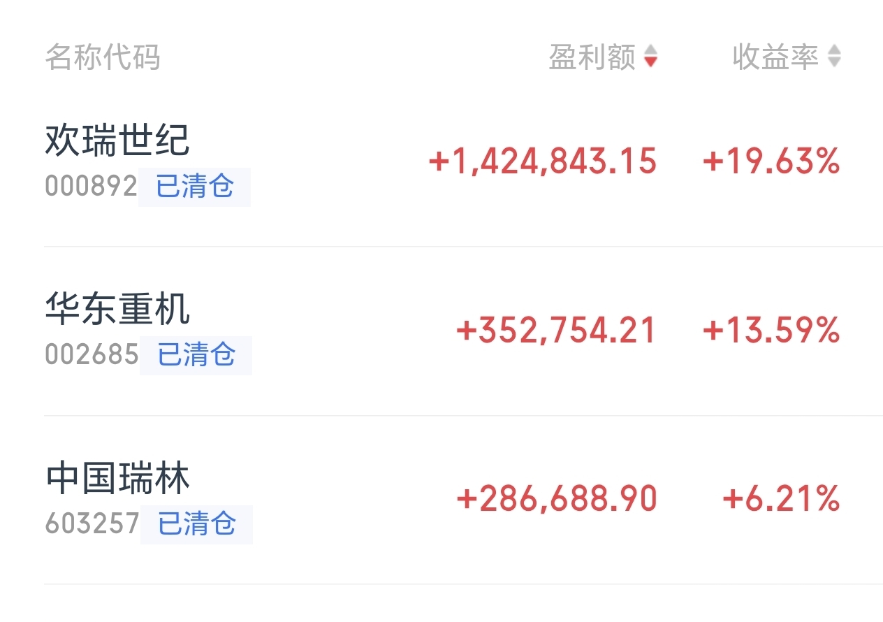 $欢瑞世纪(SZ000892)$ 欢瑞我在5快多钱的时候就清仓了,是赚得最多的一只股票,我对她还是很有感情的,现在她远离我而去,我也不再追随,人要知足,不知何日再相会?