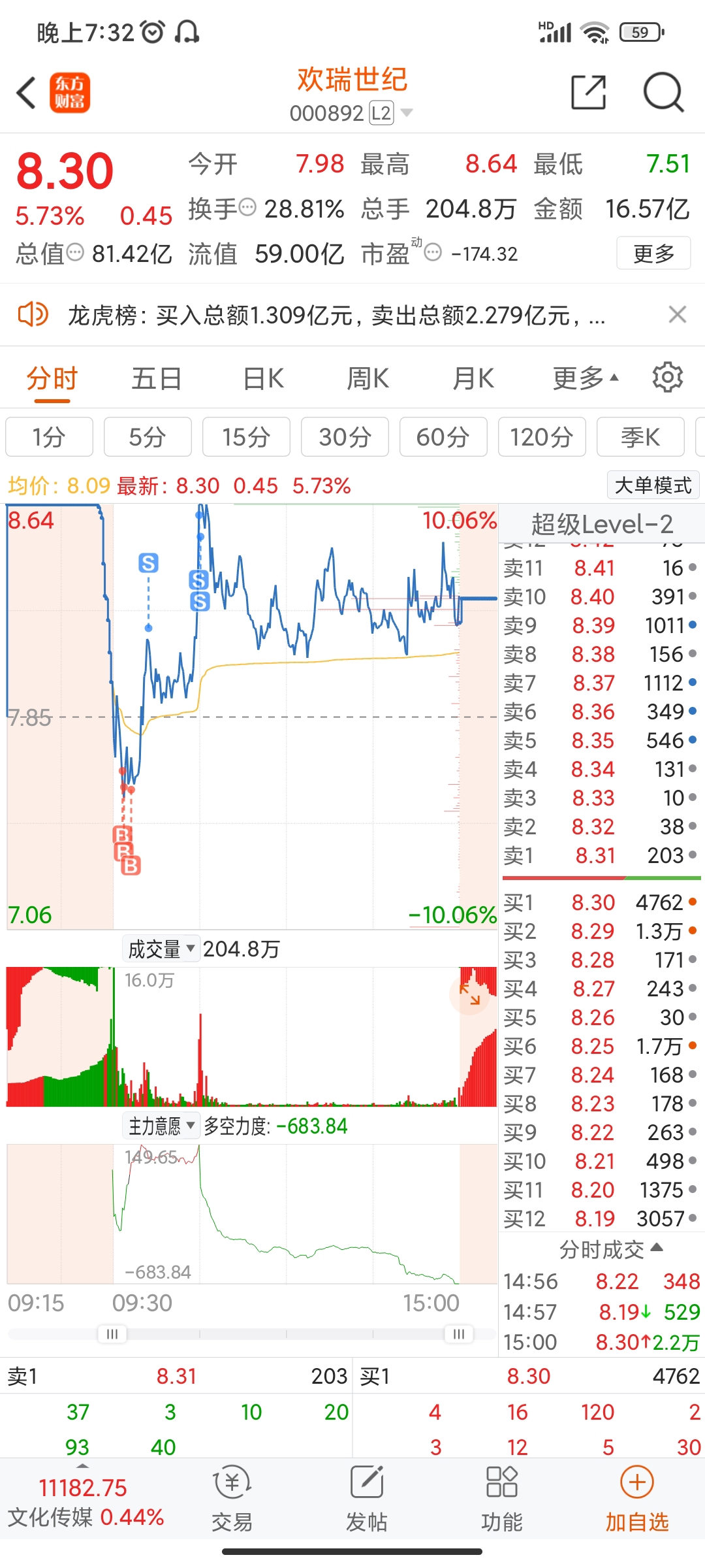 $欢瑞世纪(SZ000892)$ 对欢瑞世纪坚定看好散户一些话:本人坚定看好欢瑞这几年发展与转型,欢瑞从10月底突破平台创新高以来,现在非常健康的趋势,只要不跌破5日线继续看好,其次今天分时承接季度很强,全天都在均线上方,。前来看行情没有结束,应该是上涨中继,今天柚子砸盘都没有按下去,欢瑞老庄极力维持盘面了,看买盘三家机构就知道,都是欢瑞老庄所为,我一直留有底仓筹码,老赵不减持我就不会卖