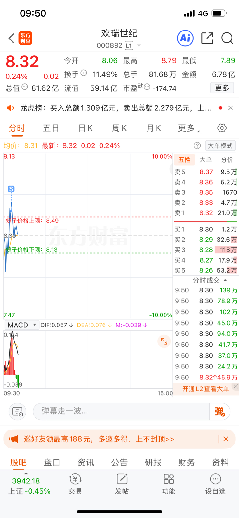 $欢瑞世纪(SZ000892)$ 呵呵,赚26点