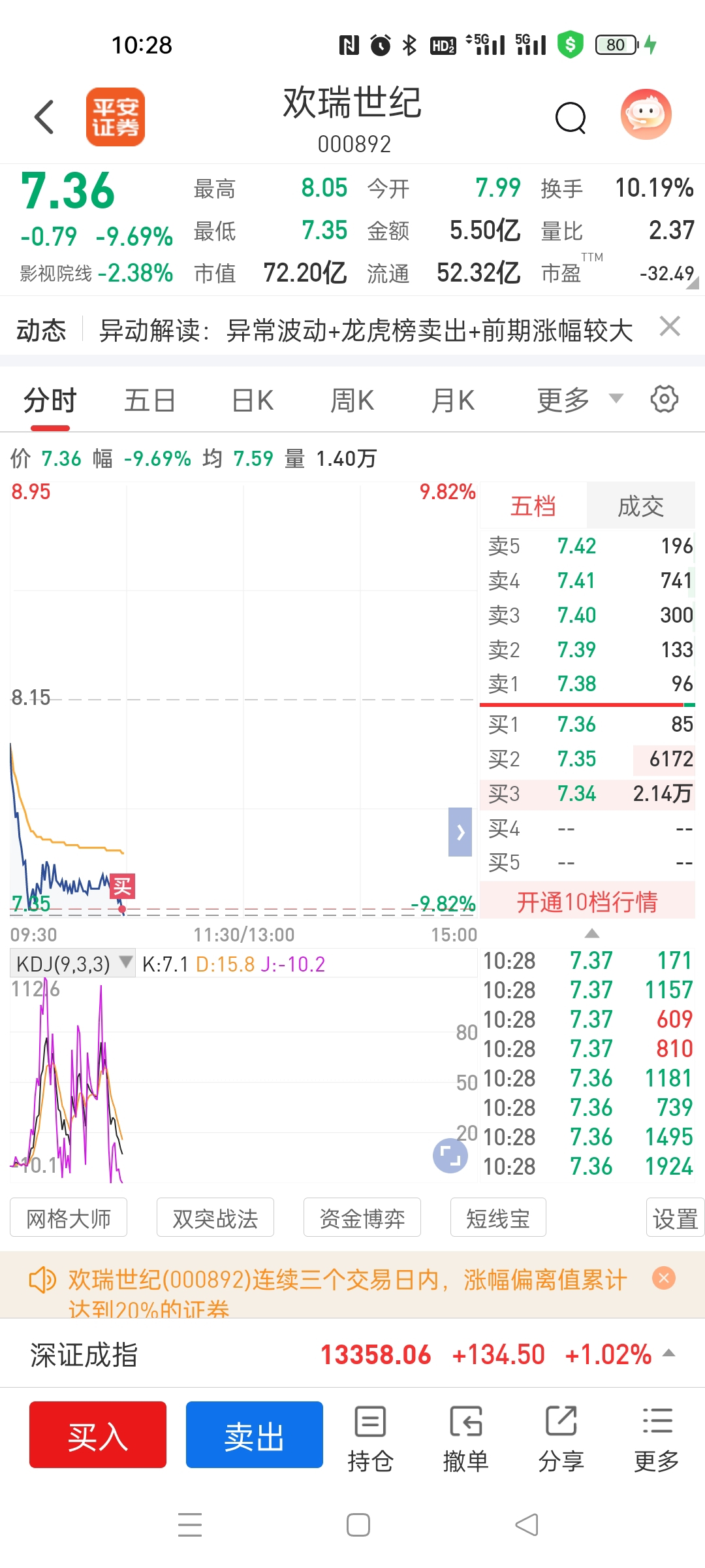 $欢瑞世纪(SZ000892)$ 怕吗,其实我也怕明天继续跌停