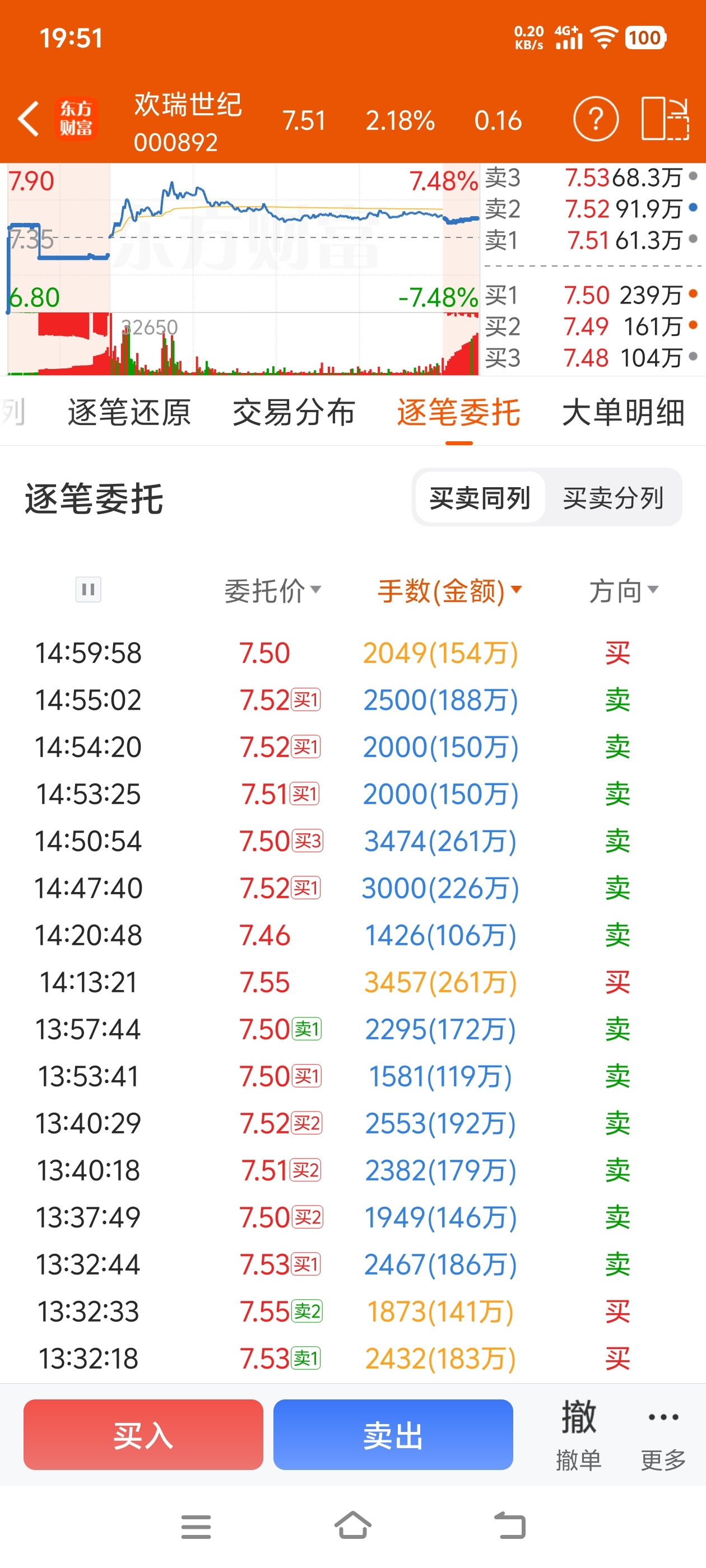 $欢瑞世纪(SZ000892)$ 明天能红就不错了,还想板