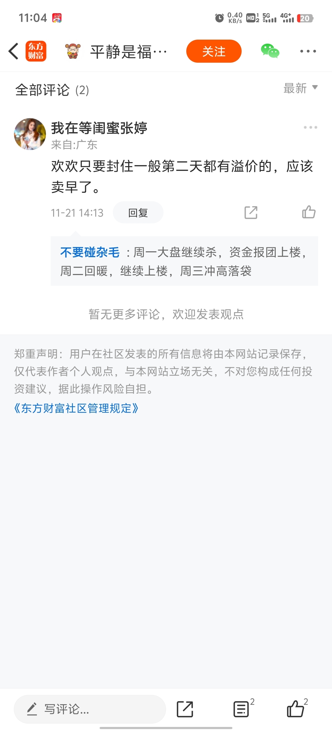温馨提示: 1.根据《证券法》规定,禁止编造、传播虚假信息或者误导性信息,扰乱证券市场;2.用户在本社区发表的所有资料、言论等仅代表个人观点,与本网站立场无关,不对您构成任何投资建议。用户应基于自己的独立判断,自行决定证券投资并承担相应风险。《东方财富社区管理规定》