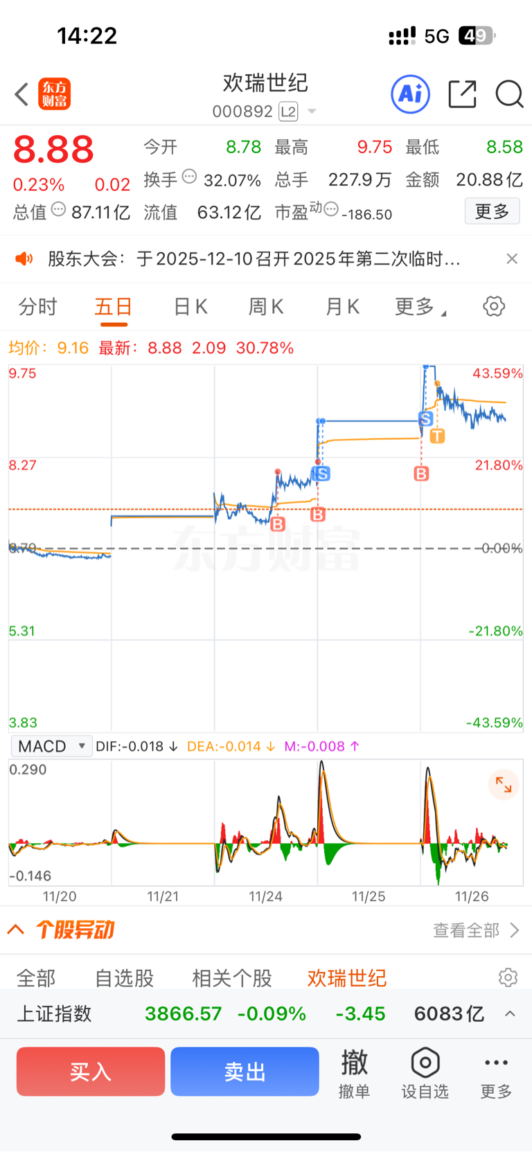 $欢瑞世纪(SZ000892)$ 对于这种量化票我是装着防弹衣和他干的