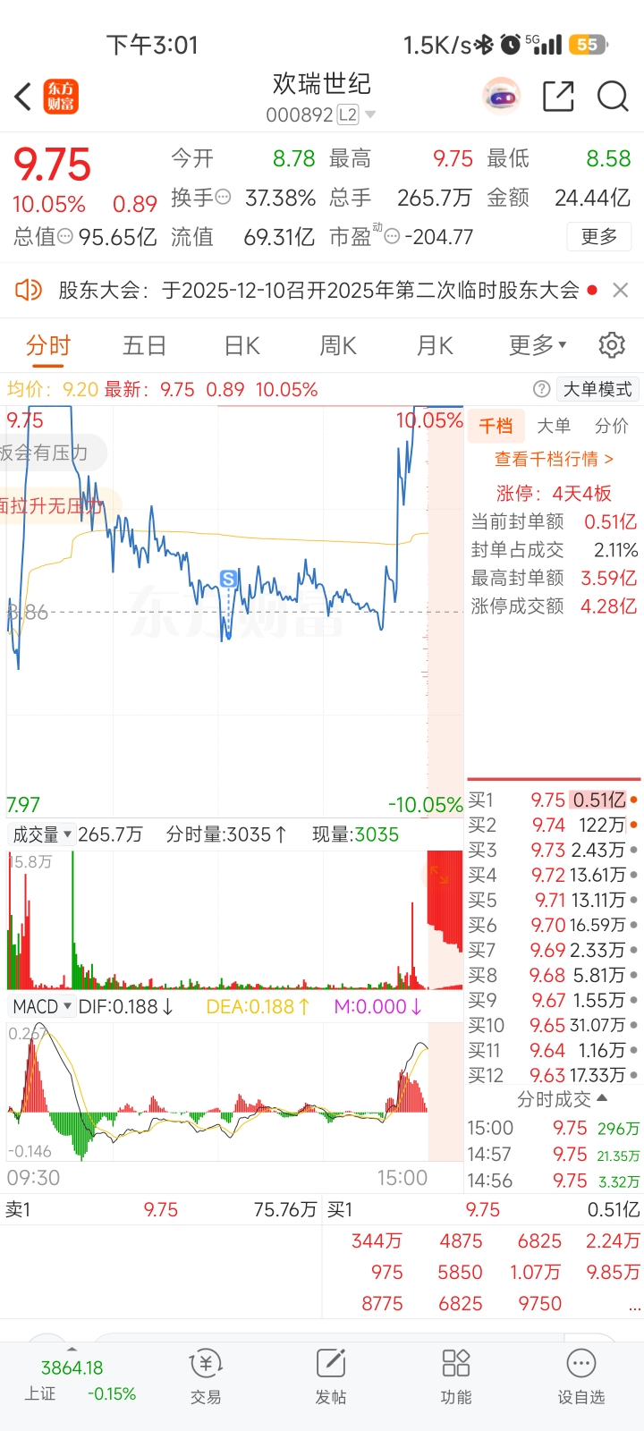 $欢瑞世纪(SZ000892)$ 心态有点崩了