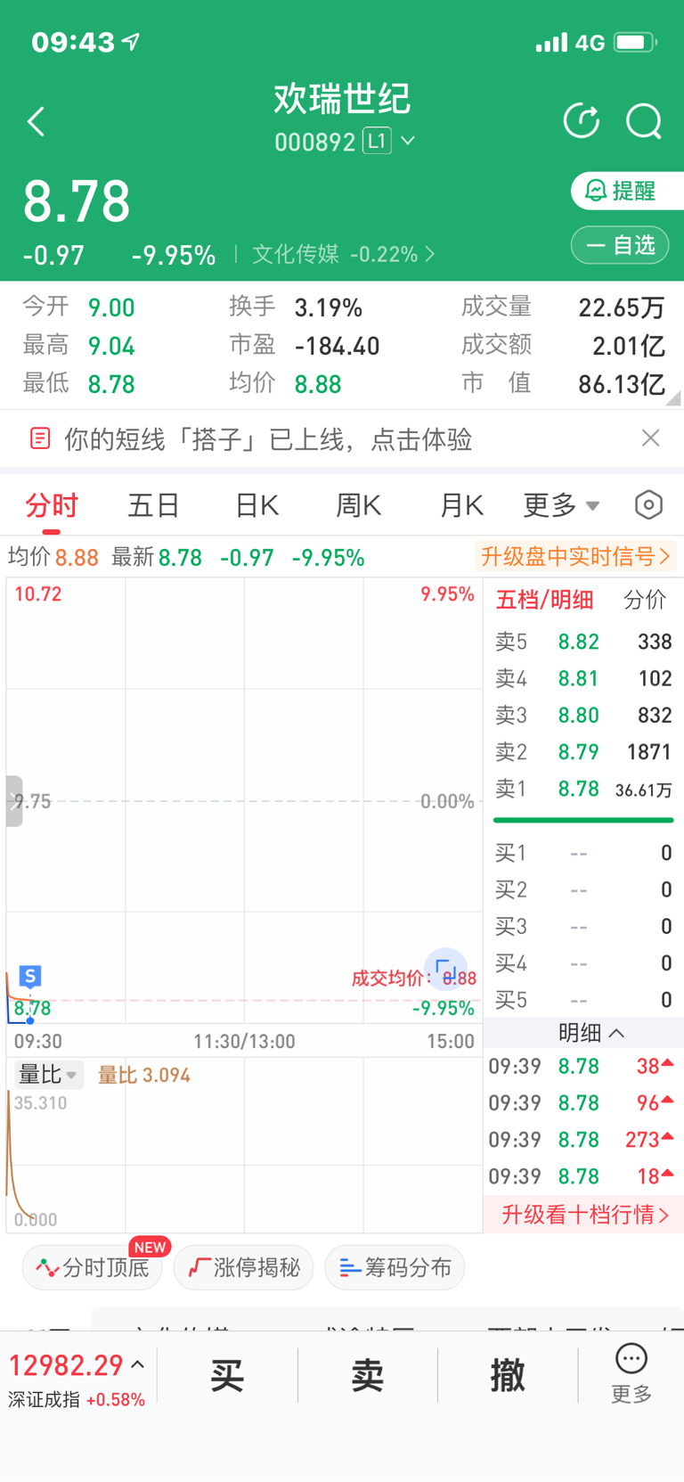 $欢瑞世纪(SZ000892)$ 一般我出来了就会拉,