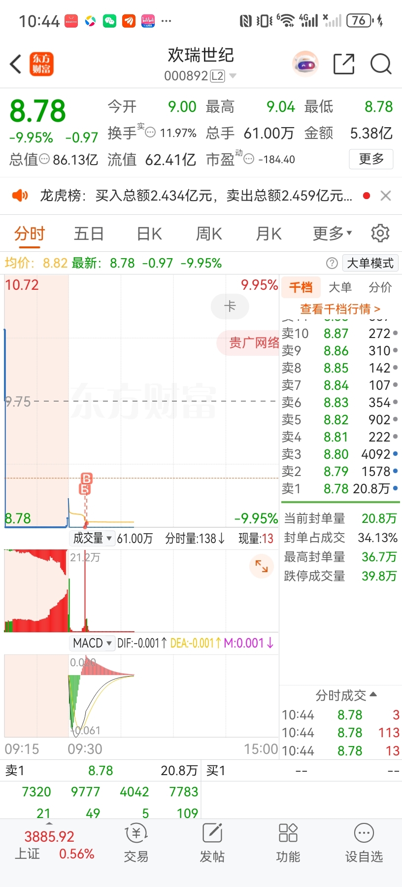 $欢瑞世纪(SZ000892)$ 哈哈,发财了发财了,地天我来了