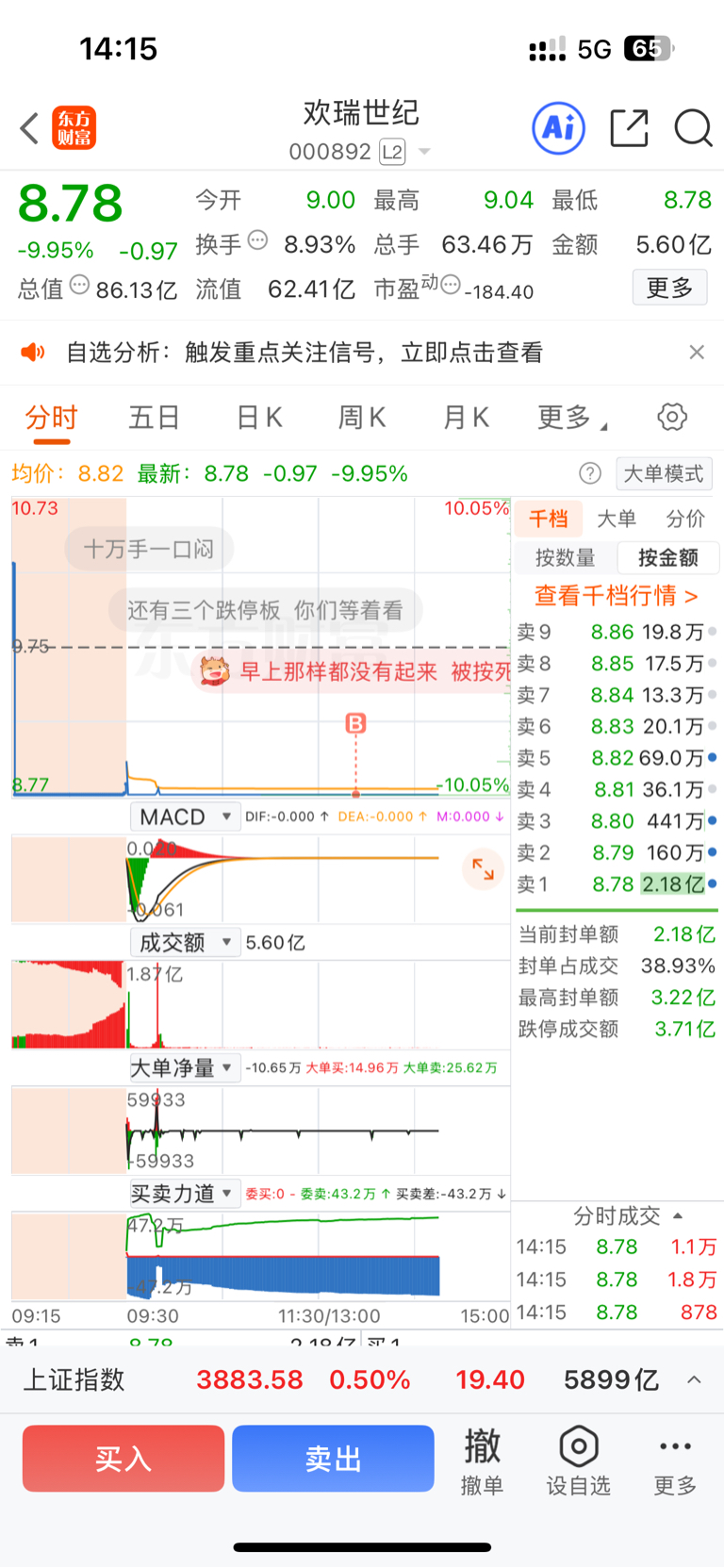 $欢瑞世纪(SZ000892)$ 这封单就是告诉我们一家人就要整整齐齐