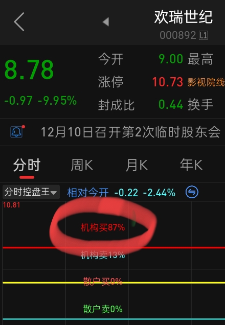 $欢瑞世纪(SZ000892)$ 机构跌停吸筹一整天也不拉一下,明天好好表现哟!