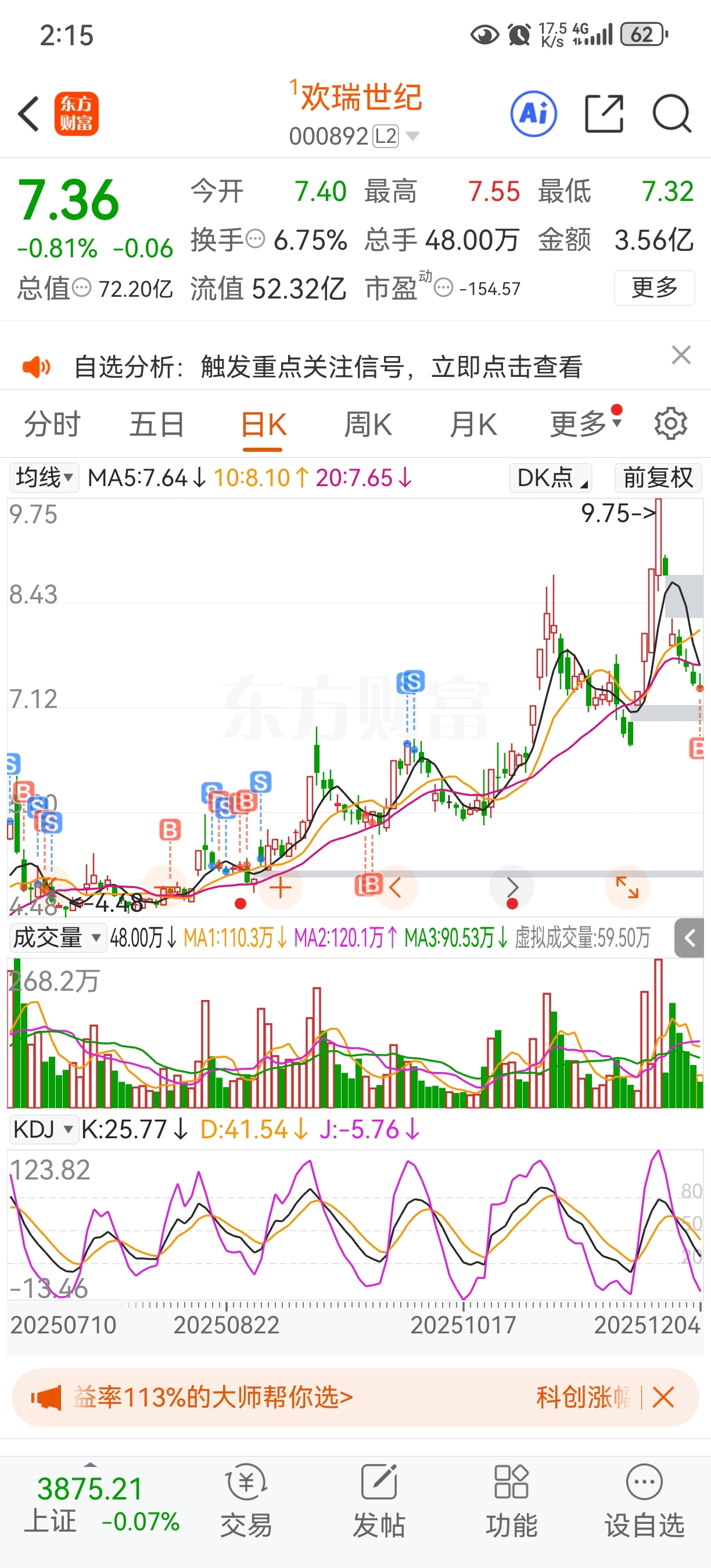 大家不用慌,我又回来了,7.36接盘,一直拿着这个票还好了,出去打野,都没赚什么